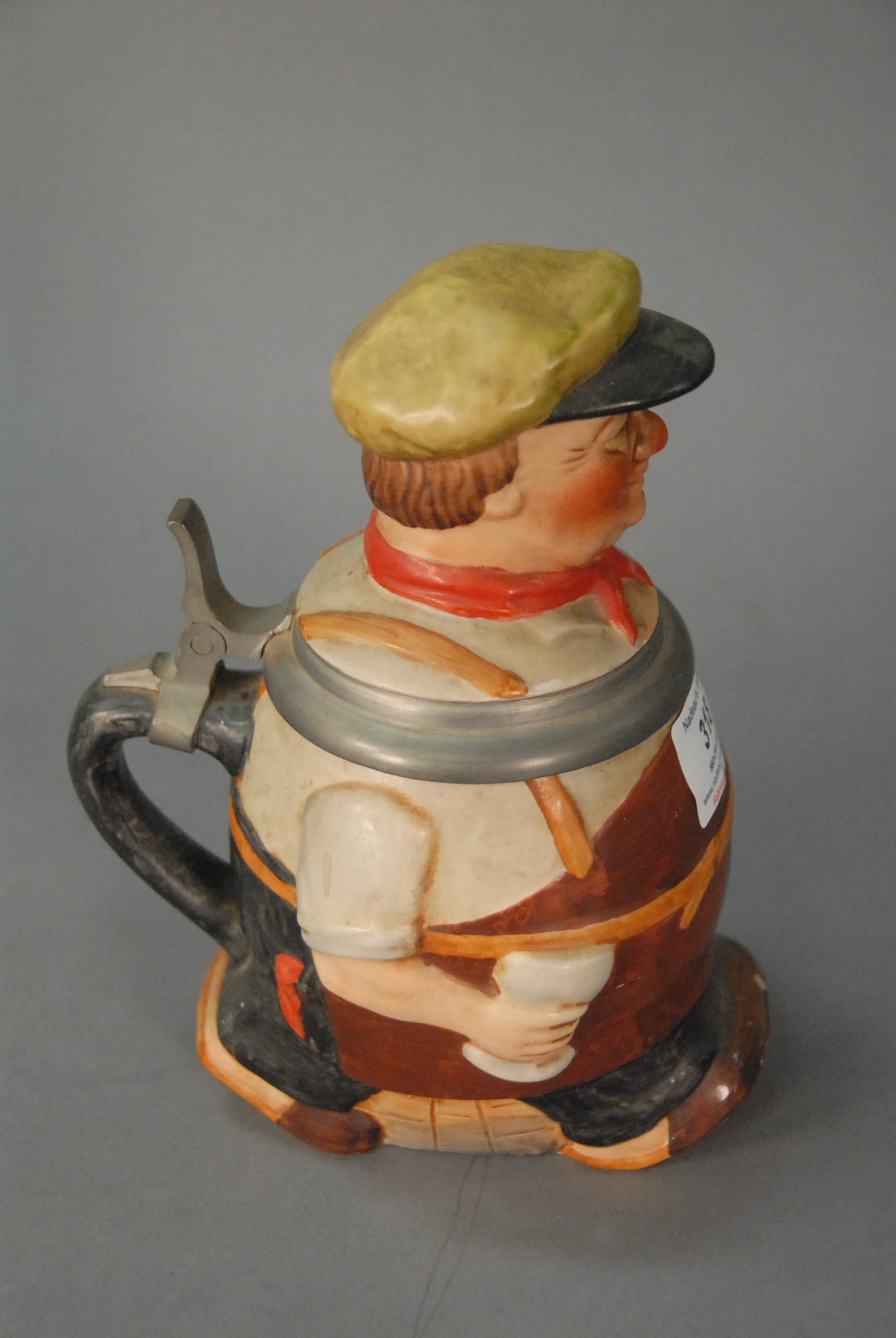 German figural stein, beer man with hat, ht. 8 1/4in.