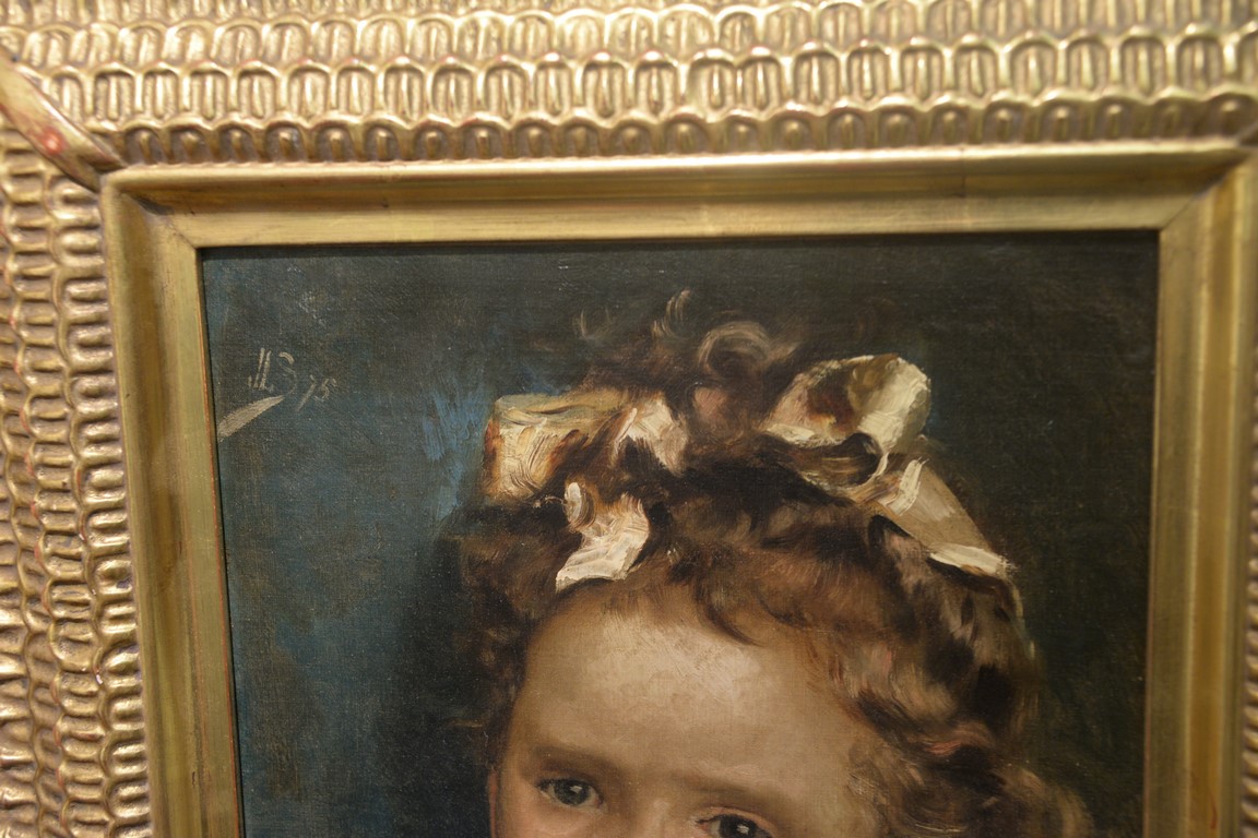 Lot 318: Julius Le Blanc Steward 1855-1919 oil on canvas Portrait of a Young Girl initialed top left: JLS 75 13 x 10