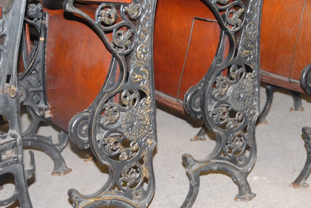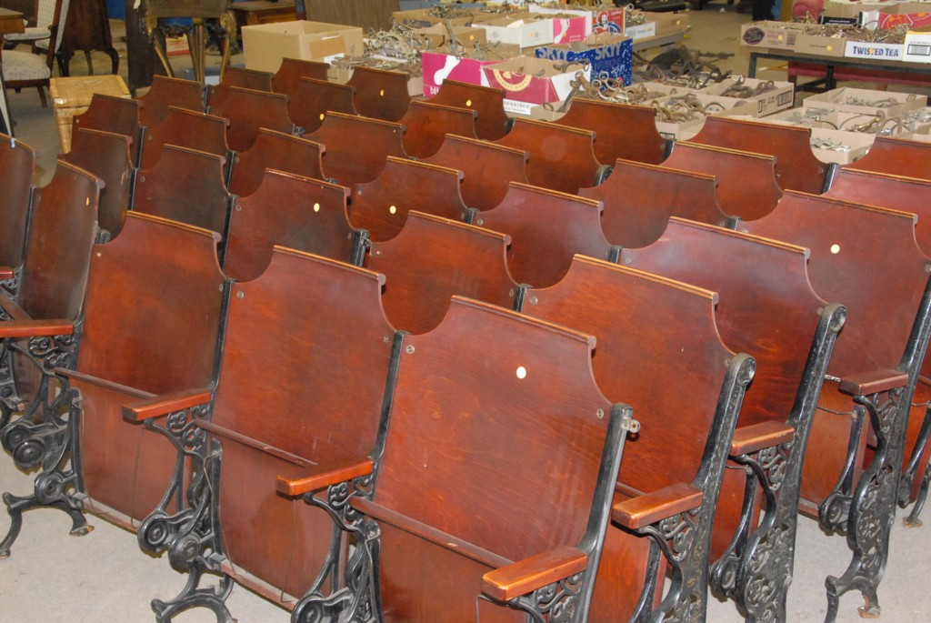 Opera chairs / seating with Victorian iron ends.