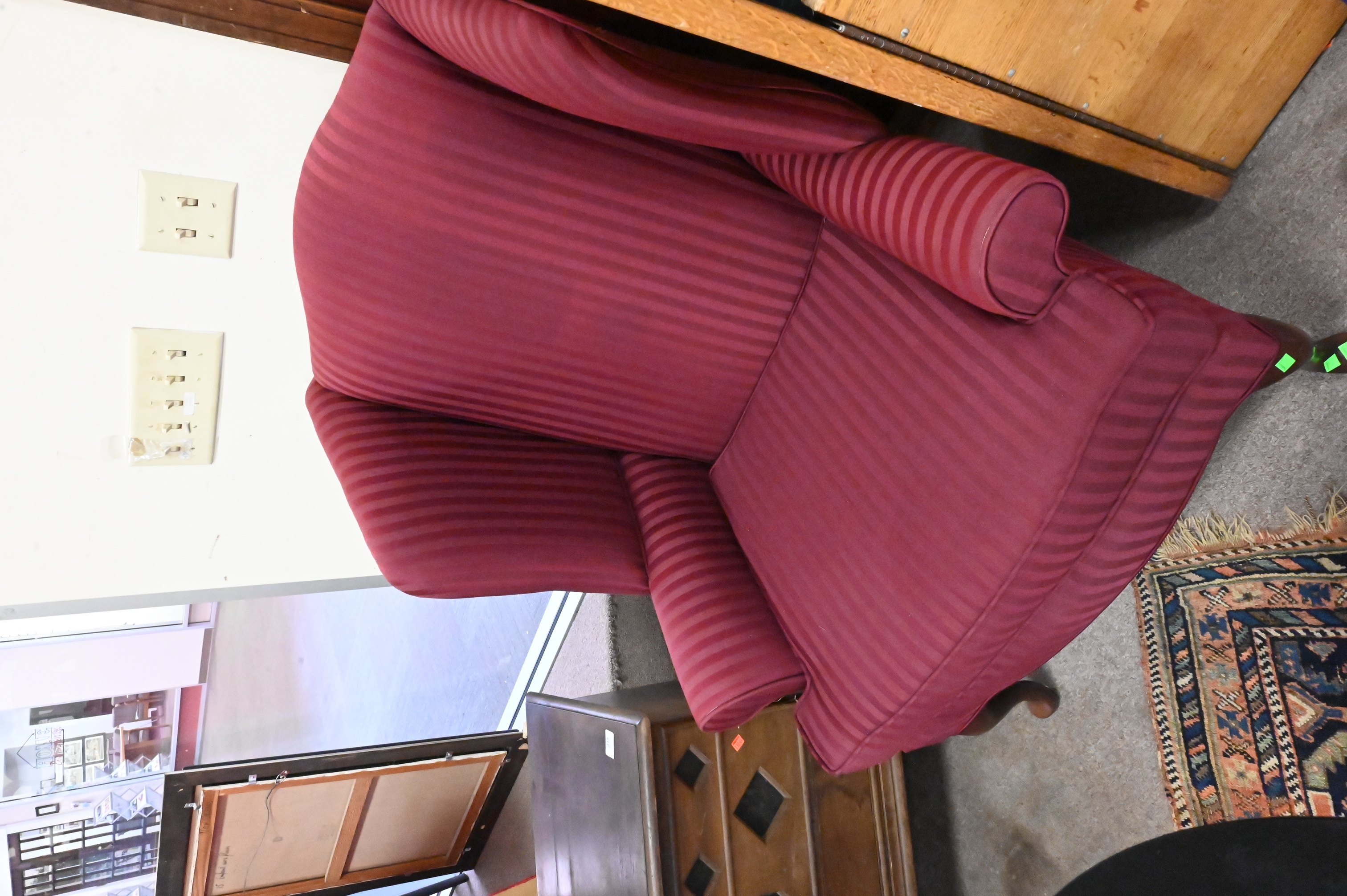 having cabriole legs ending in pad feet