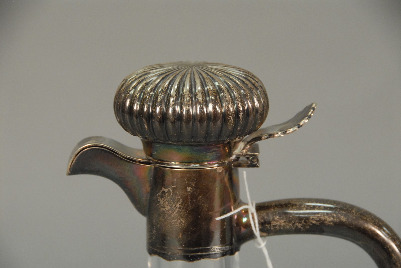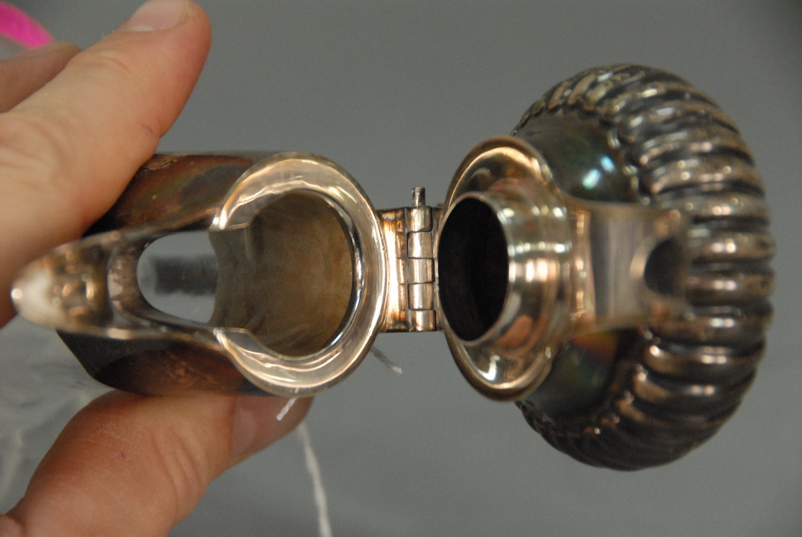 Lot 318: Theodore Starr crystal decanter, melon shaped with sterling silver top and handle. ht. 9 1/2 in.