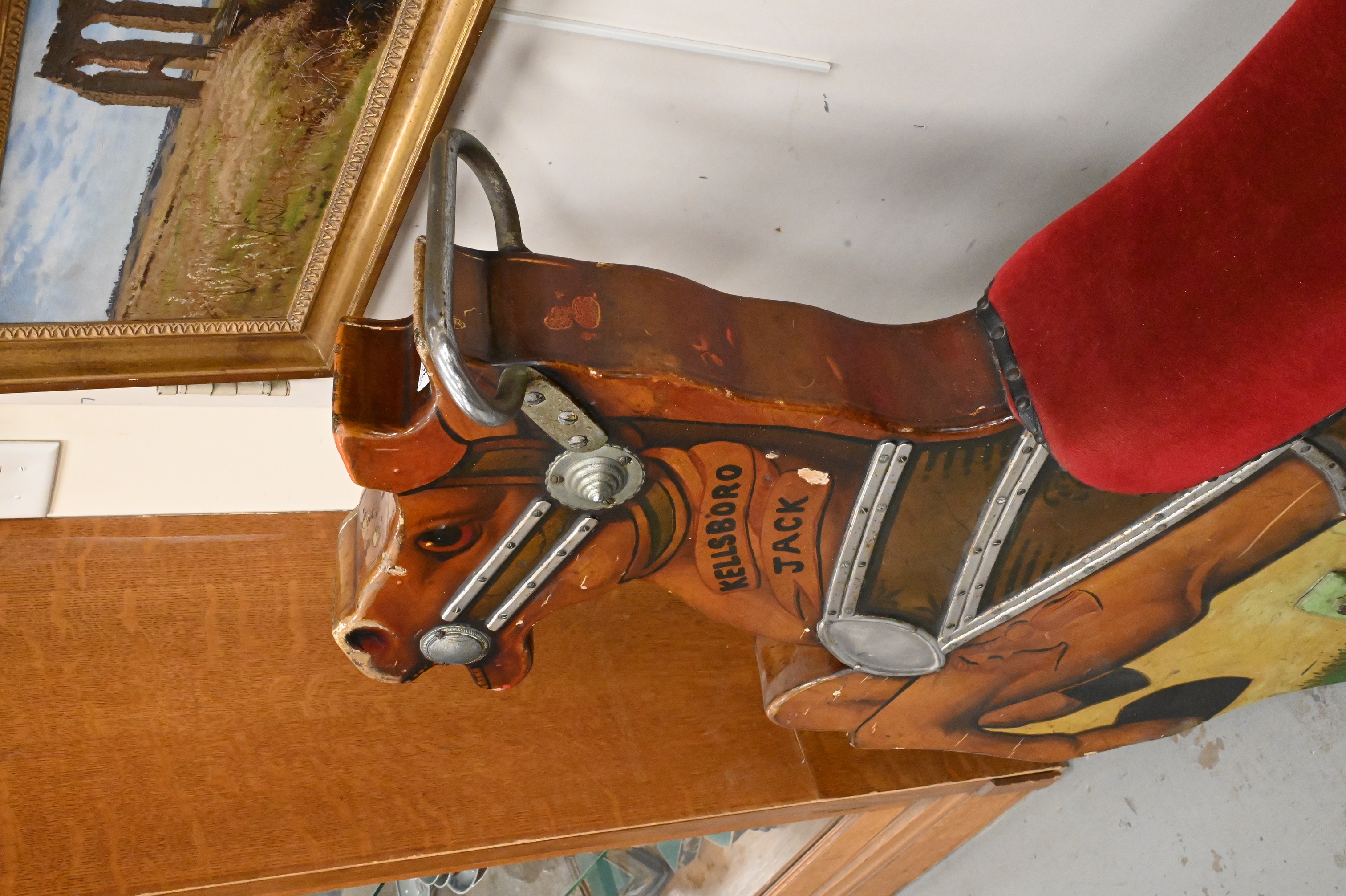 having carved and hand painted body along with metal accents, red velvet cushion, named “Kellsboro Jack”