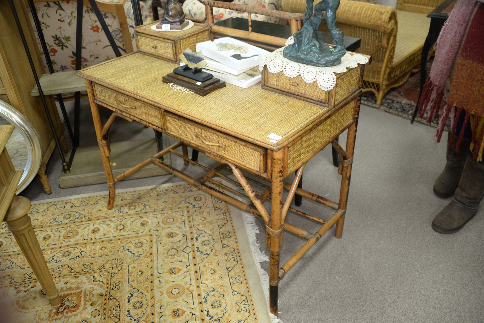 Bamboo and Rattan Desk having four drawers height 39 1/2 inches, top 22 1/2 x 41 1/2
