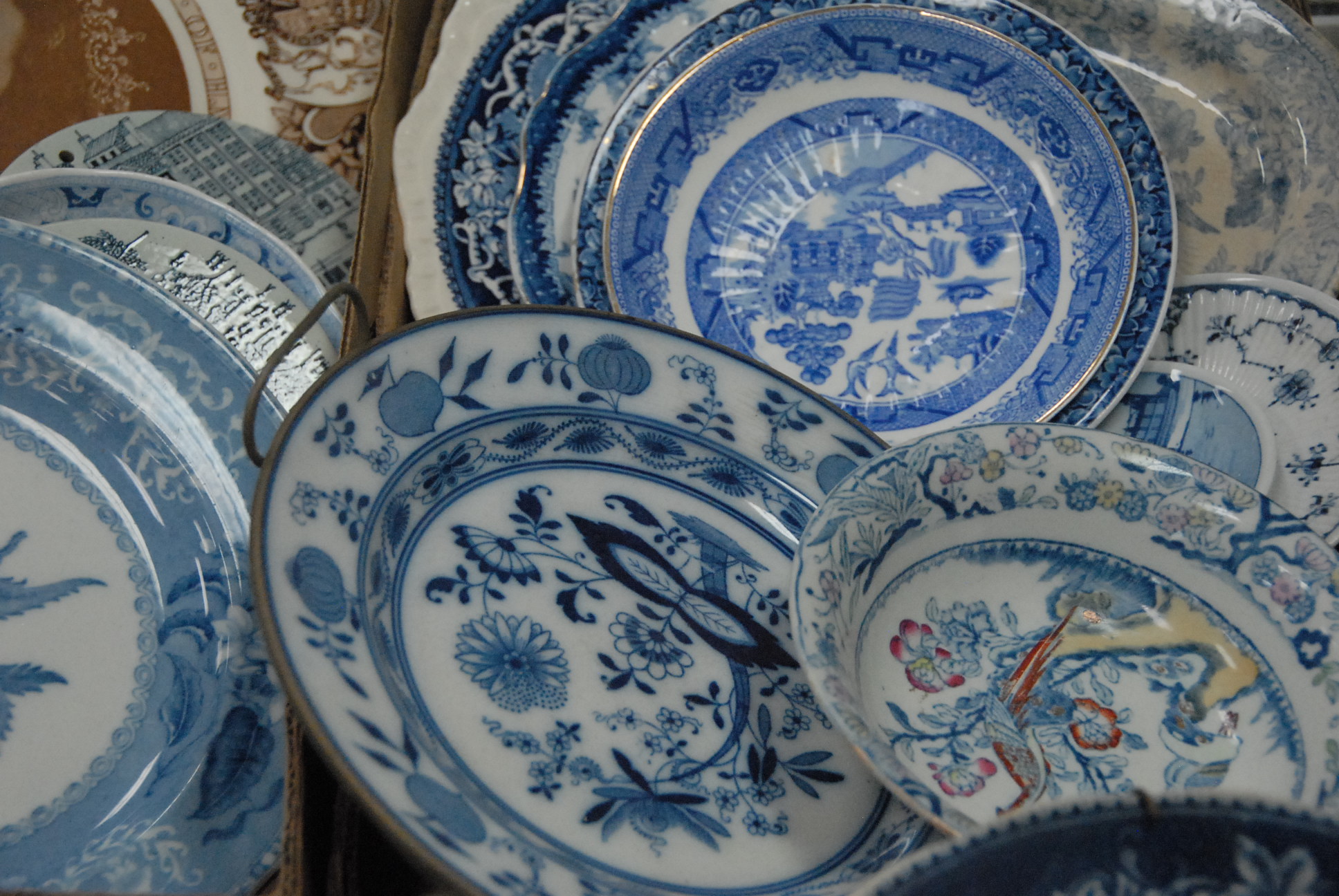 Lot 319: Five box lots of plates hand painted plates, blue and white plates, Staffordshire plates, Royal Worcester plates, and miscellaneous…