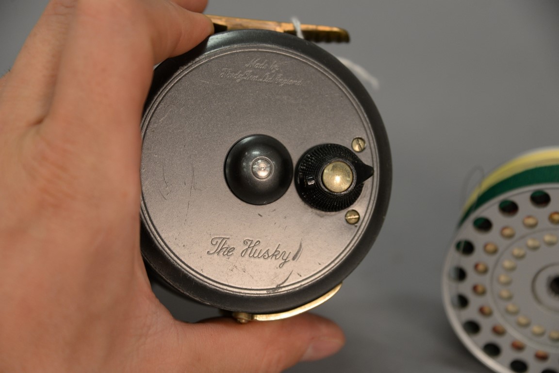 Hardy Husky fly reel with two spare spools.