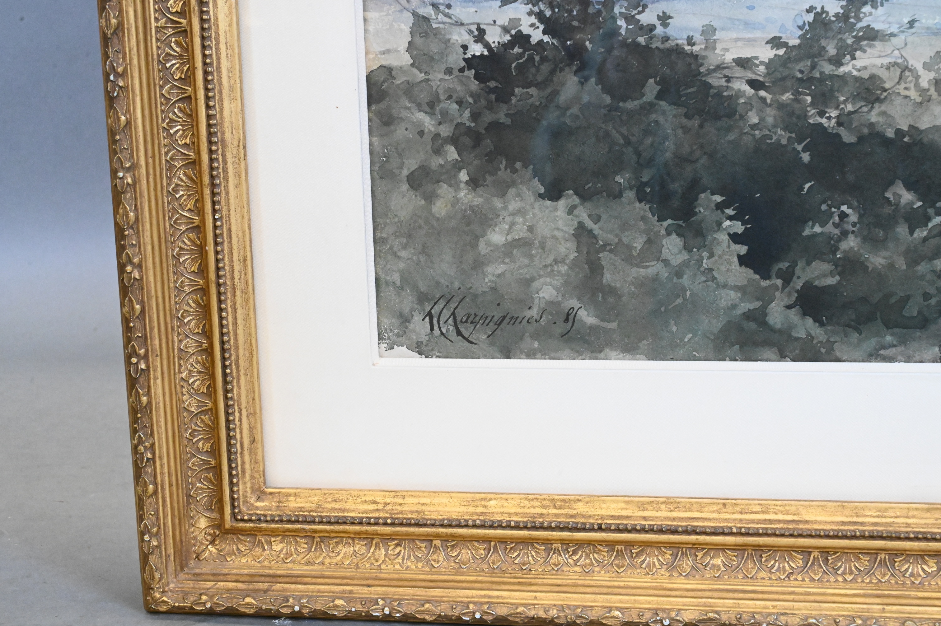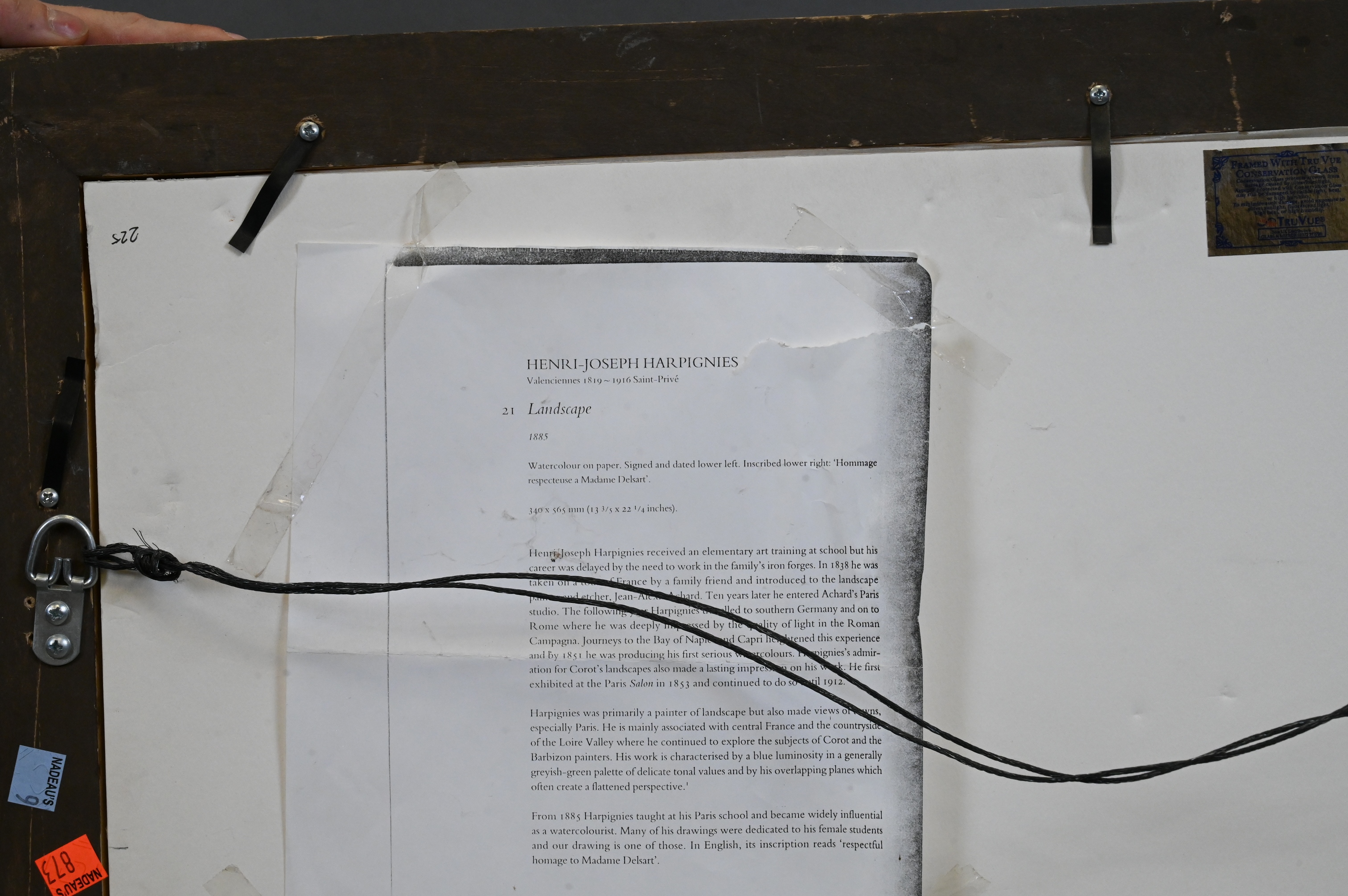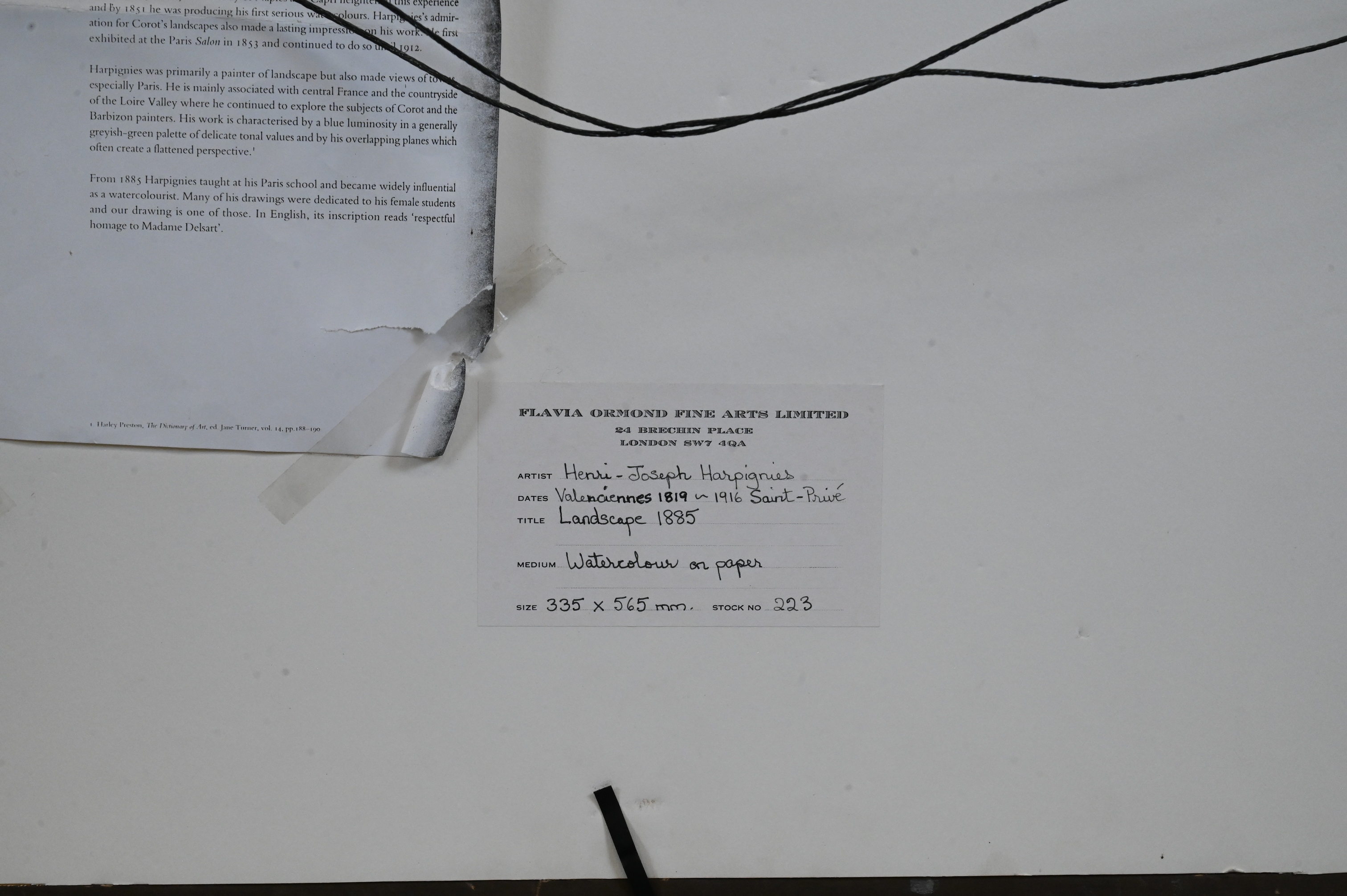 Signed and dated lower left “H.J. Harpignies ’85” inscribed lower right “Hommage respectueux à Madame Delsart”