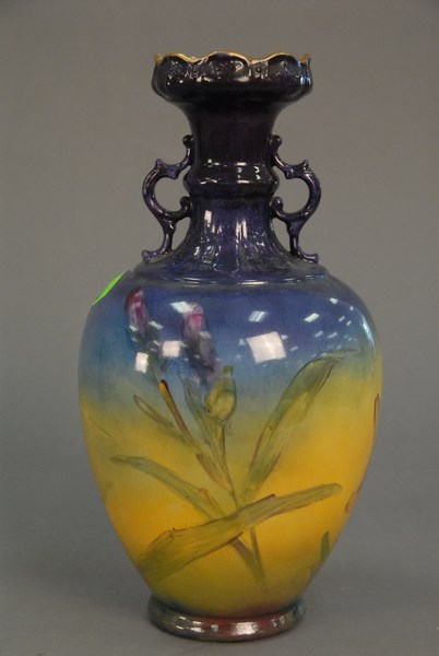 Royal Bonn flower painted vase with two handles. ht. 12 1/2in.