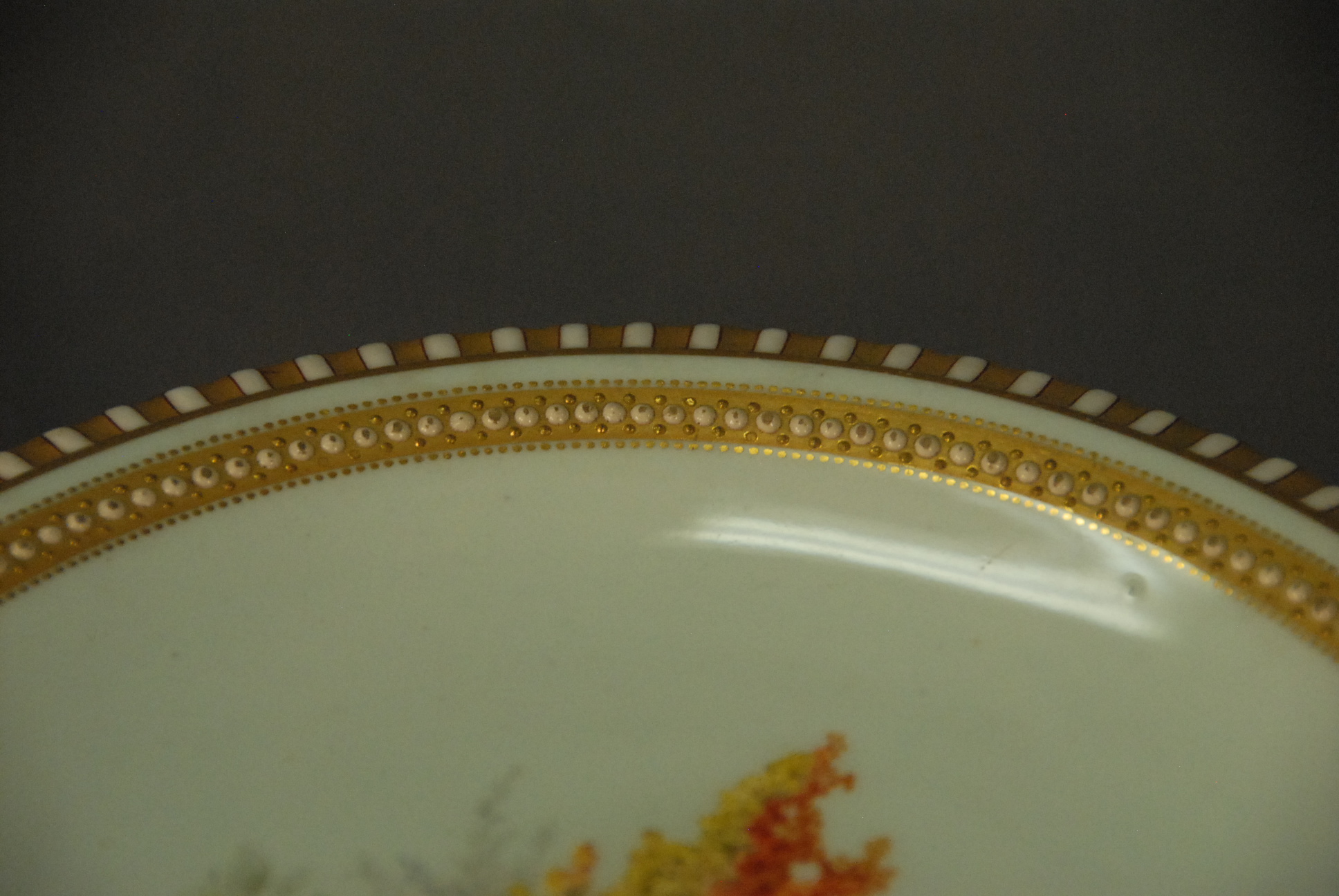 Set of eleven Worcester plates, each with raised beadwork and various hand painted flowers. dia. 9 3/8in.