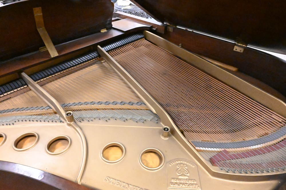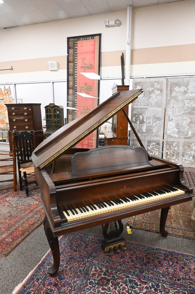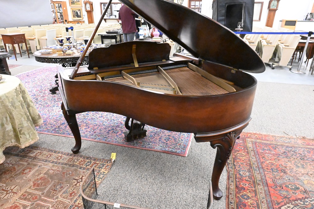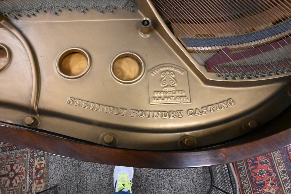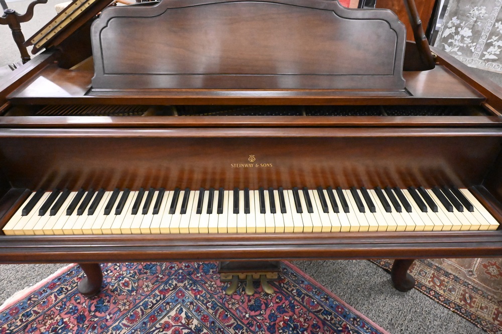 Lot 319: Steinway Mahogany Grand Piano, on carved cabriole legs ending in pad feet, length 62 inches.