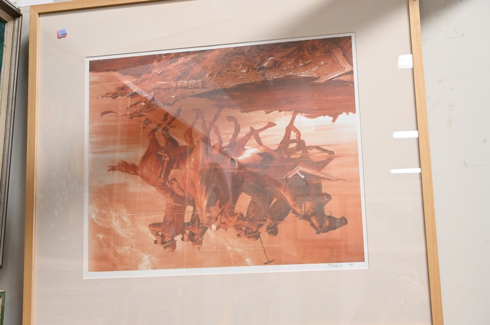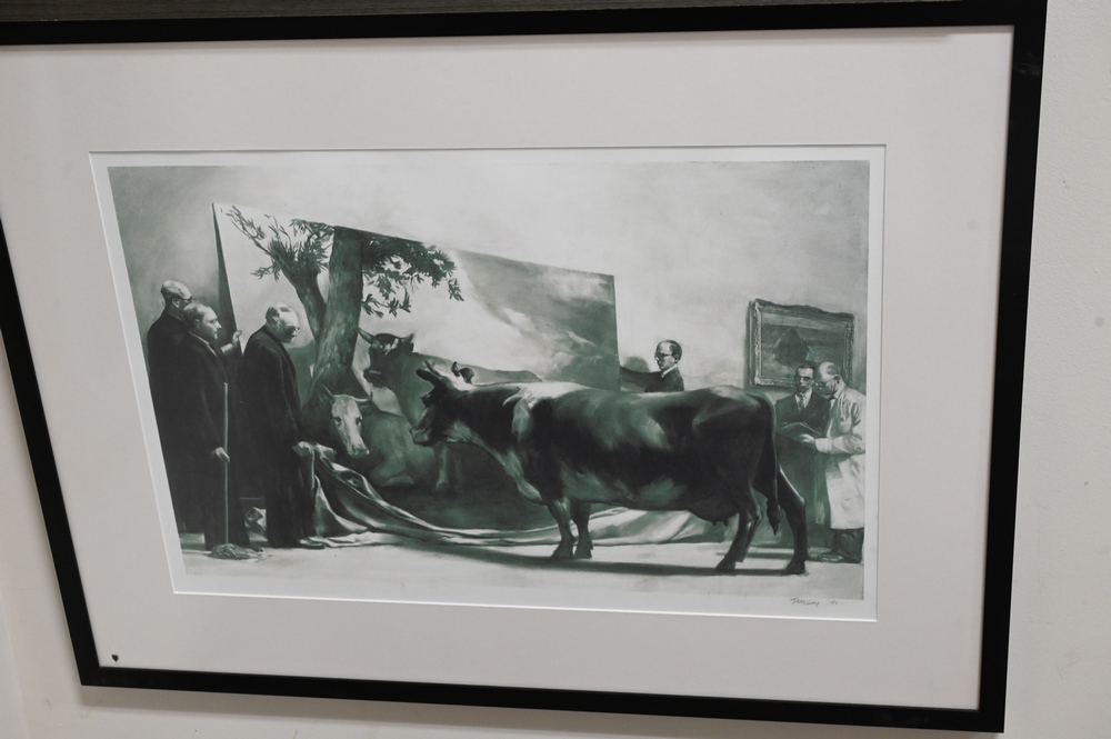 Lot 319: Three Pencil Signed Prints by Ramsey, to include Reflection; cow looking at a painting of cows; Dangerous Job on Rocky Coast; larges…