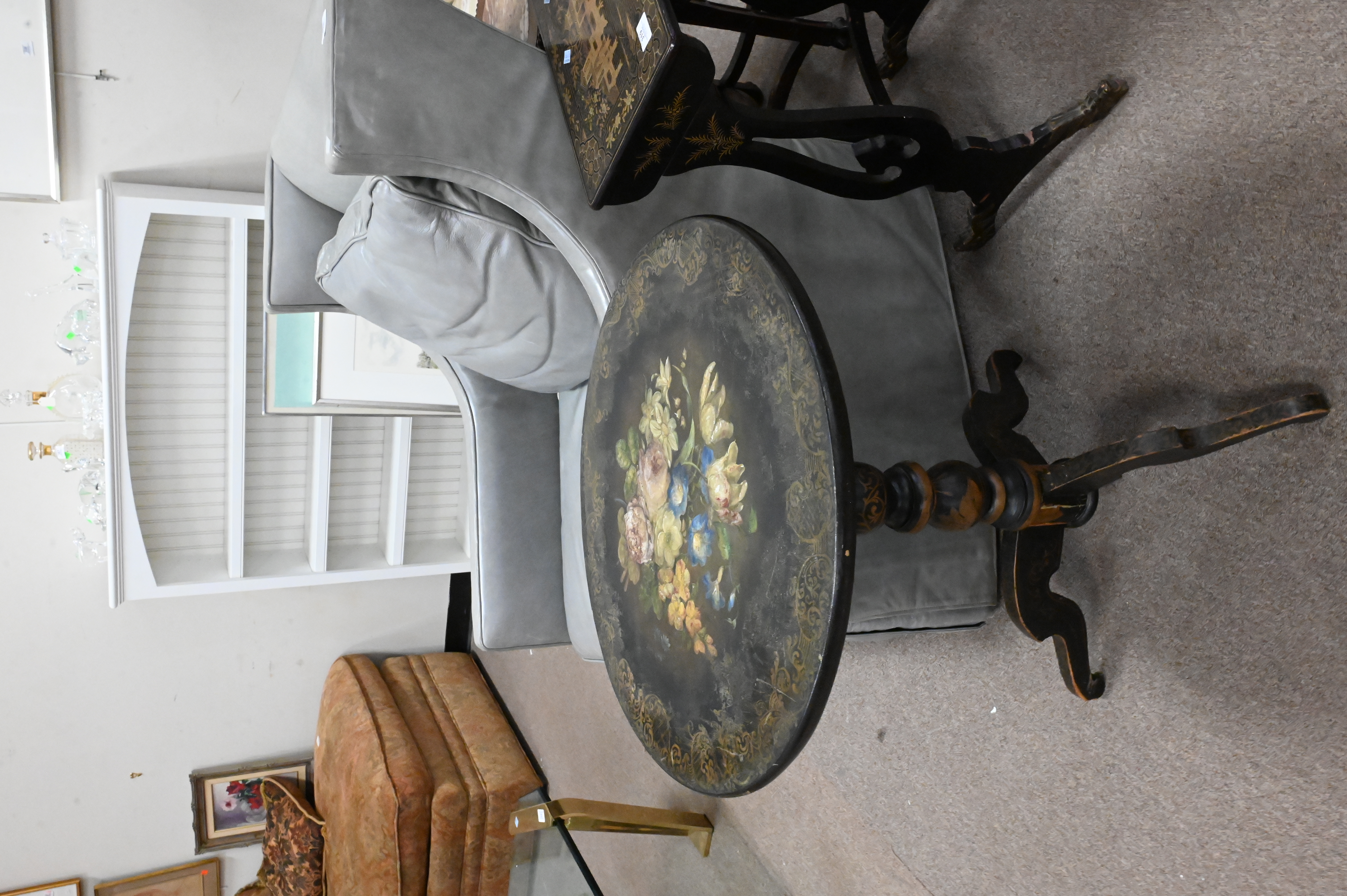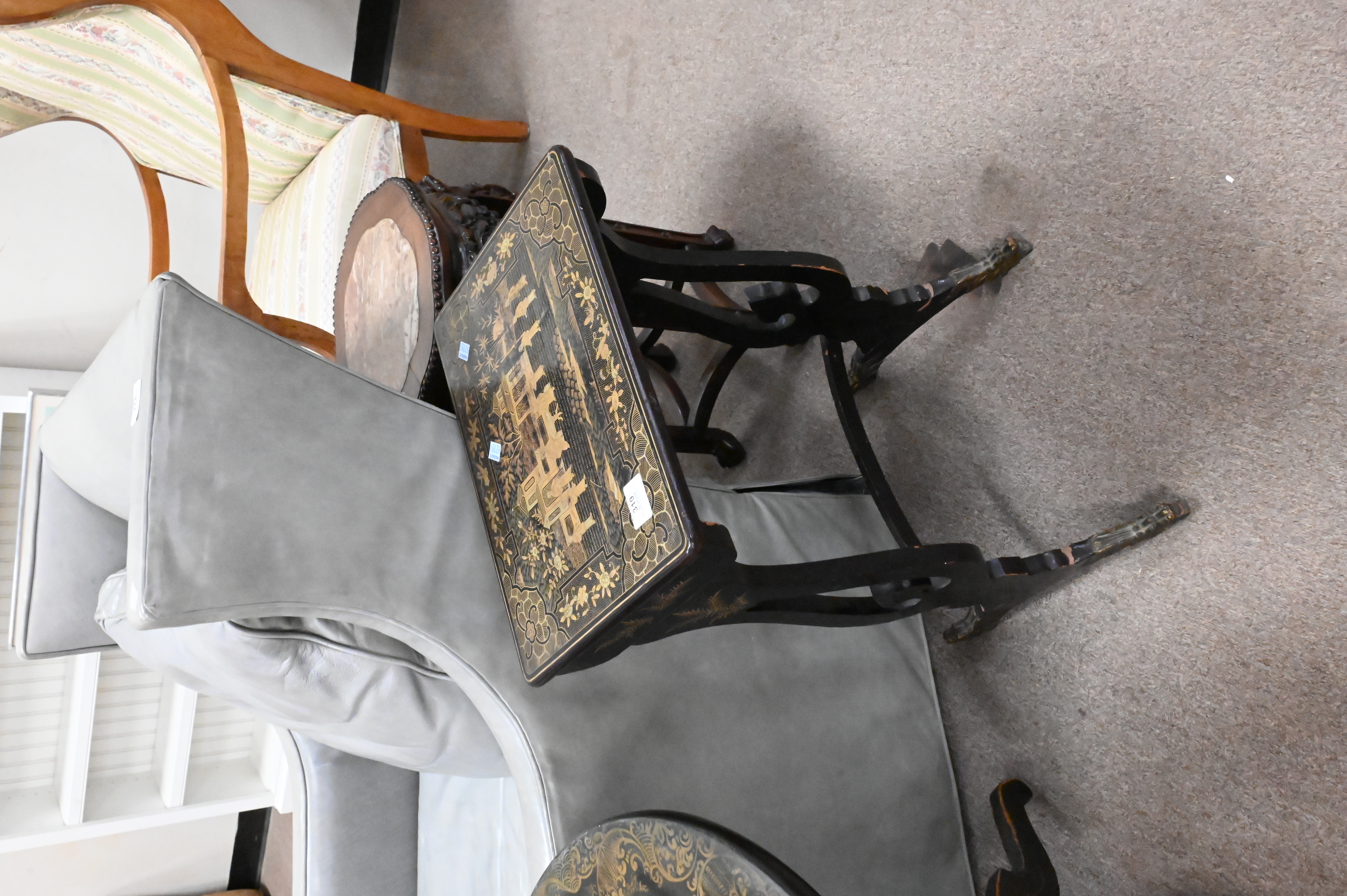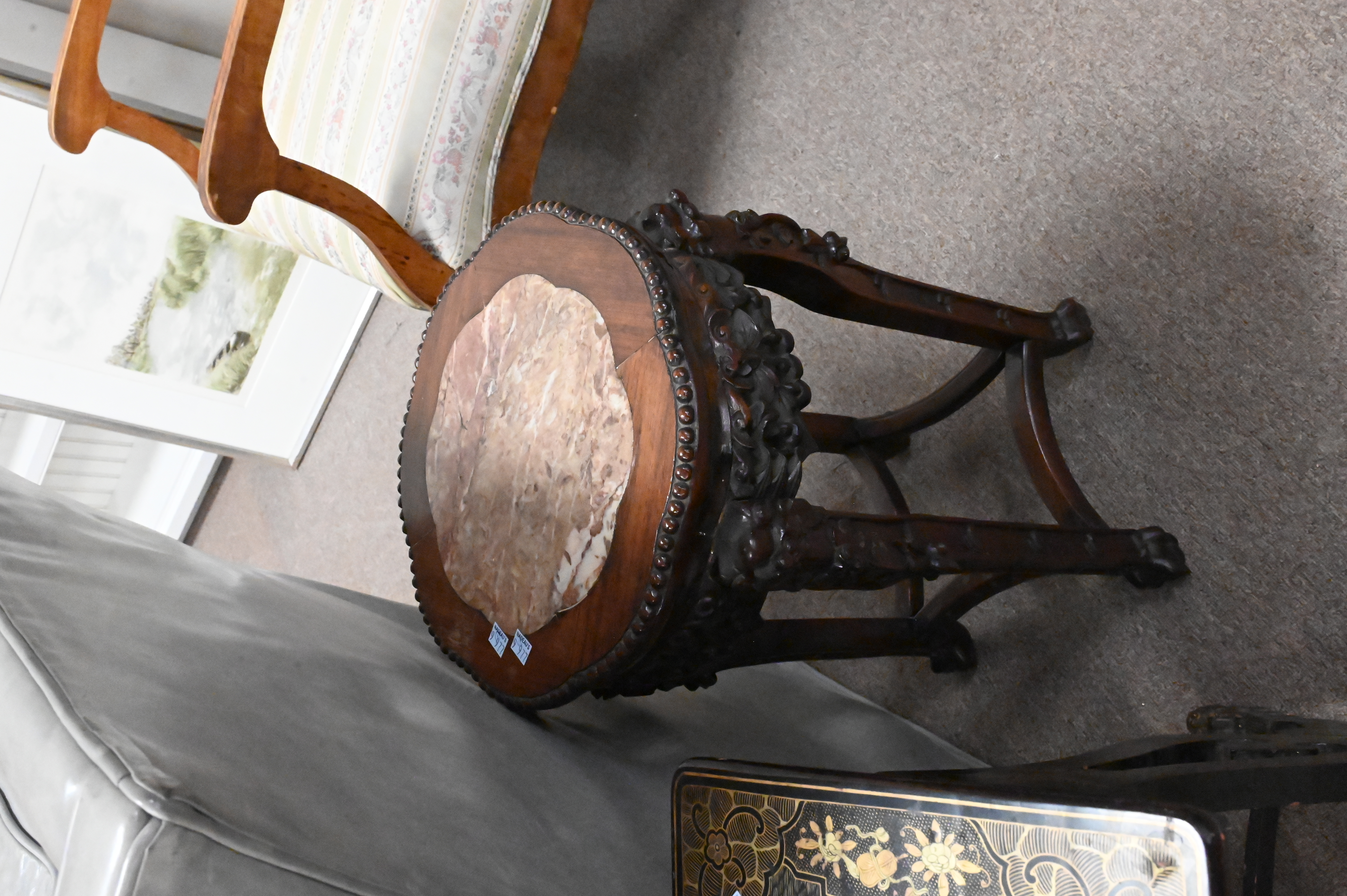 to include Chinese carved marble top table, chinoiserie decorated table, and one painted table