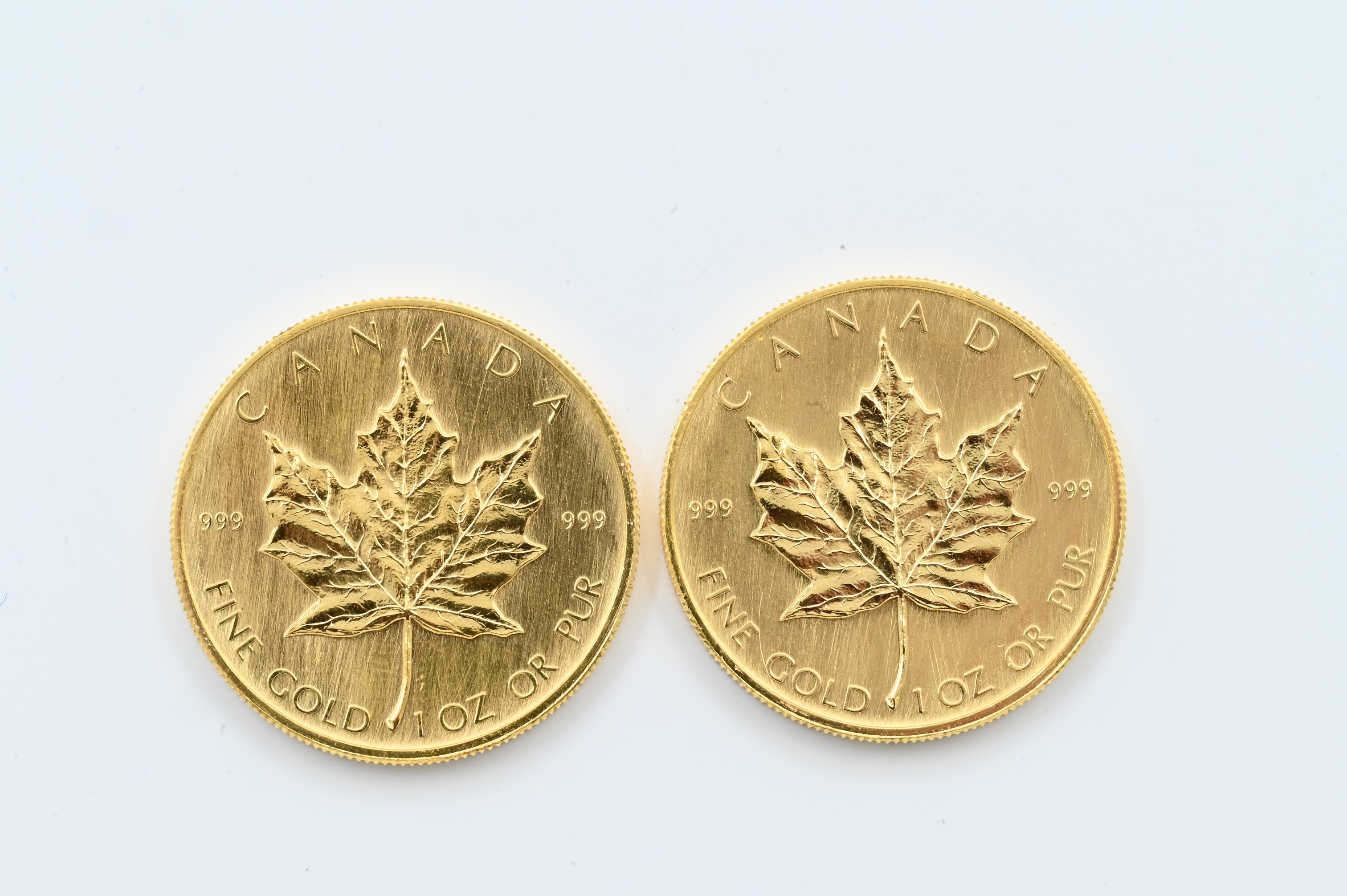 Two 1980 Canadian Maple Leaf 1 Ounce Gold Coins