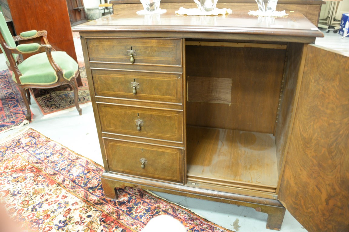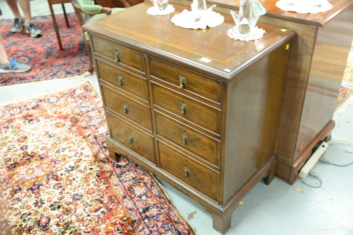 Burl walnut two door cabinet. ht. 34 in. wd. 34 in. dp. 18 in.