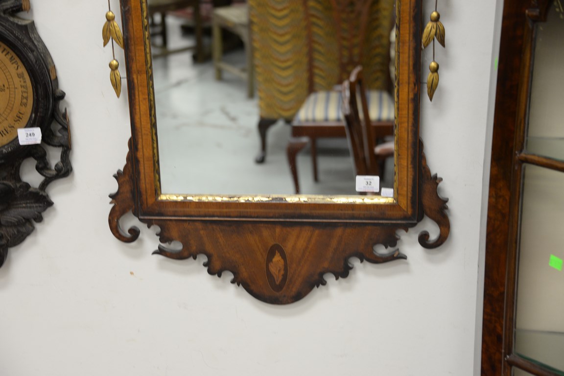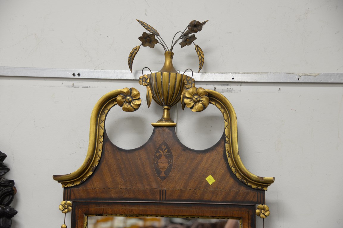 Custom mahogany Federal style mirror with inlays, ht. 52 in. wd. 22 in.
