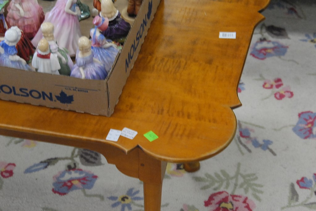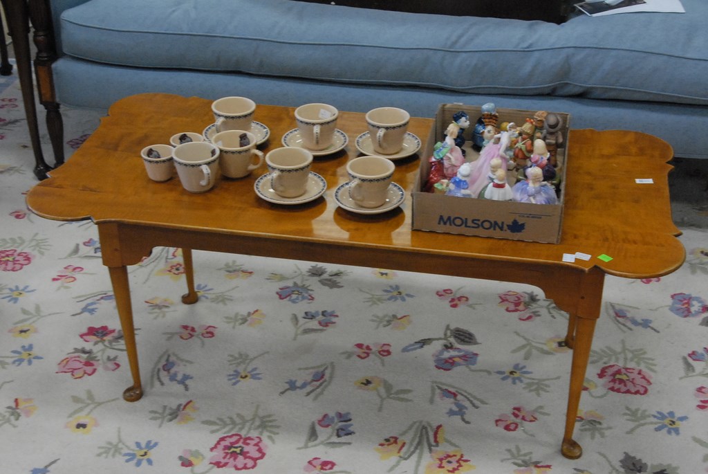 Lot 32: Eldred Wheeler maple coffee table with shaped top on Queen Anne base, signed, ht. 19in. top: 27 x 47.