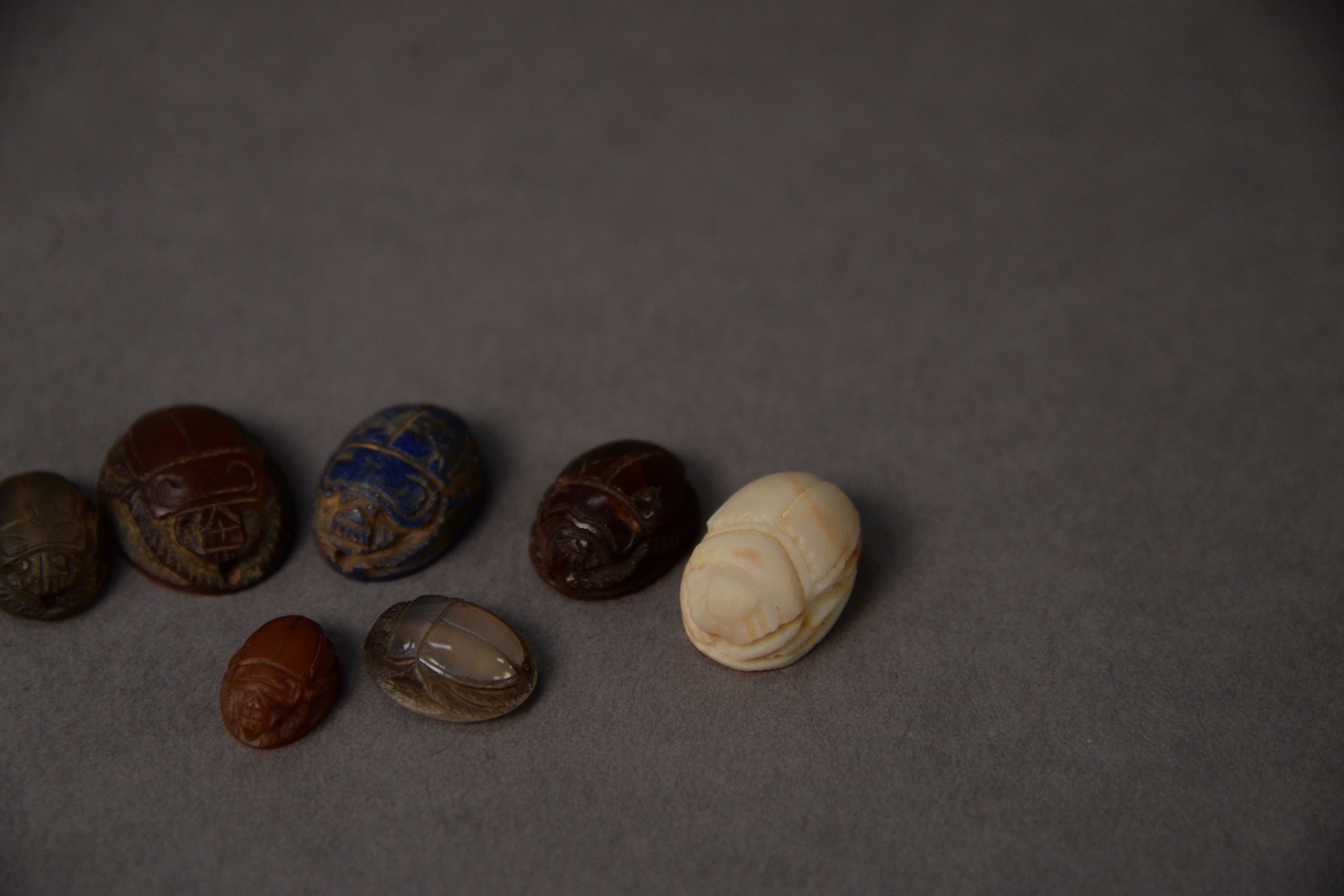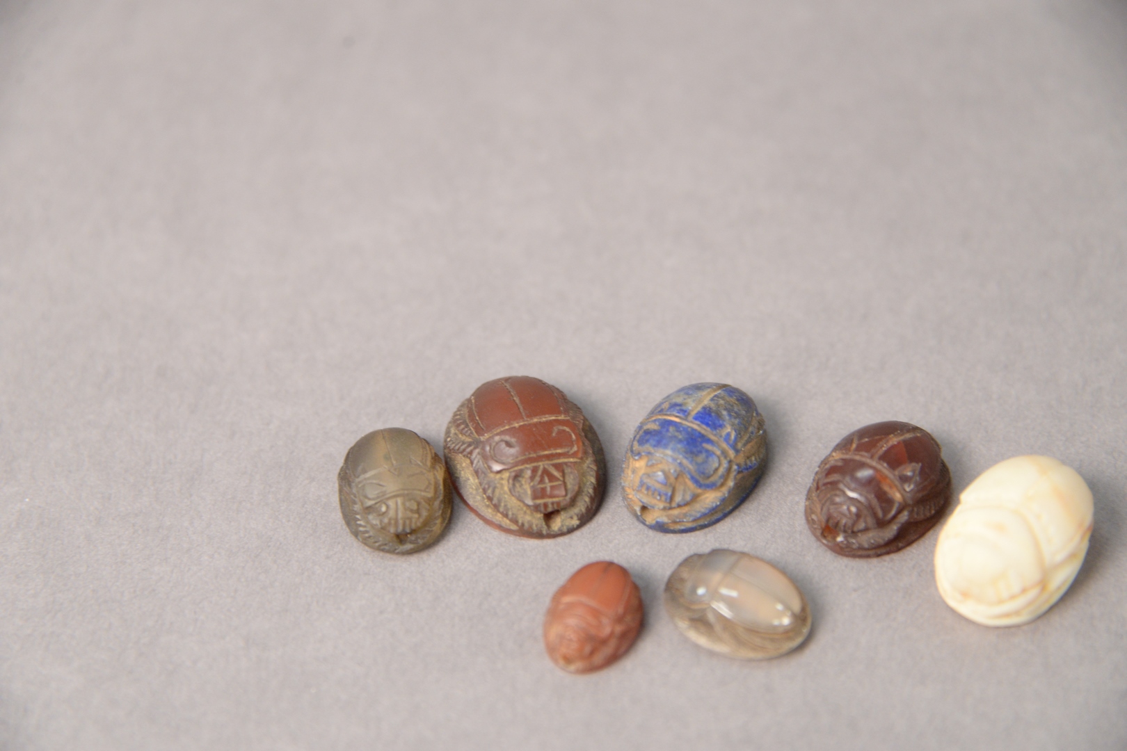 Lot 32: Group of Seven Egyptian Carved Stone Scarabs, 1/2 to 1 inch.