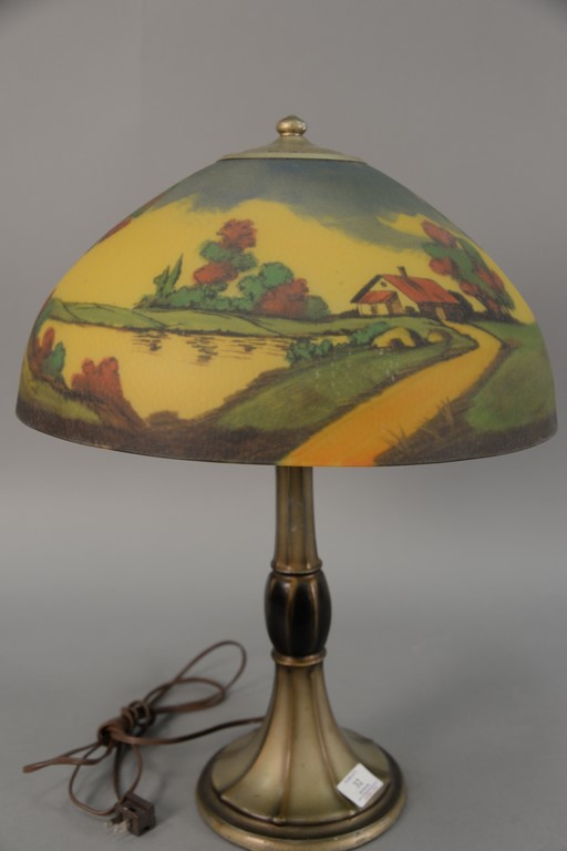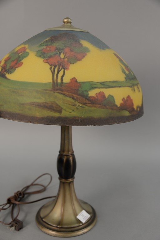 Jefferson table lamp with reverse hand painted glass shade, signed. ht. 22in.