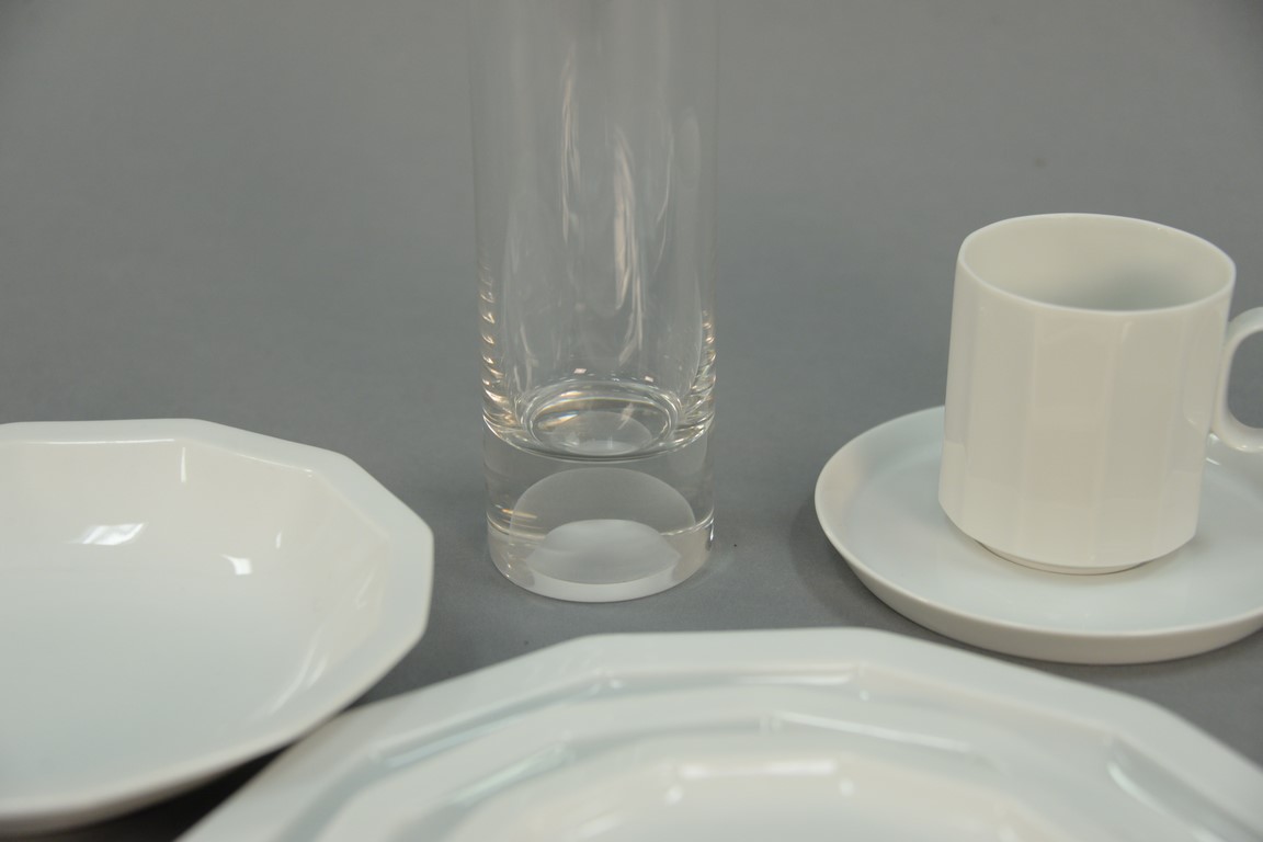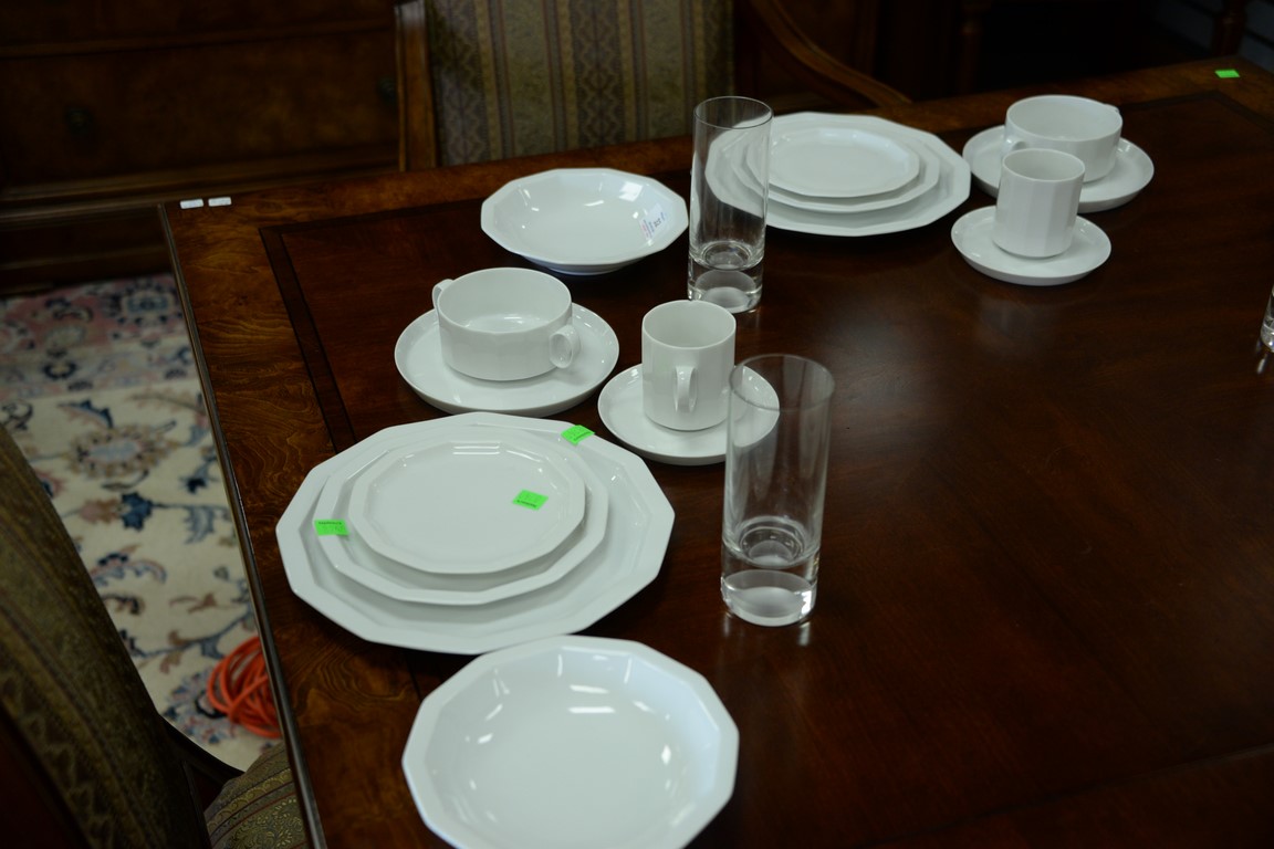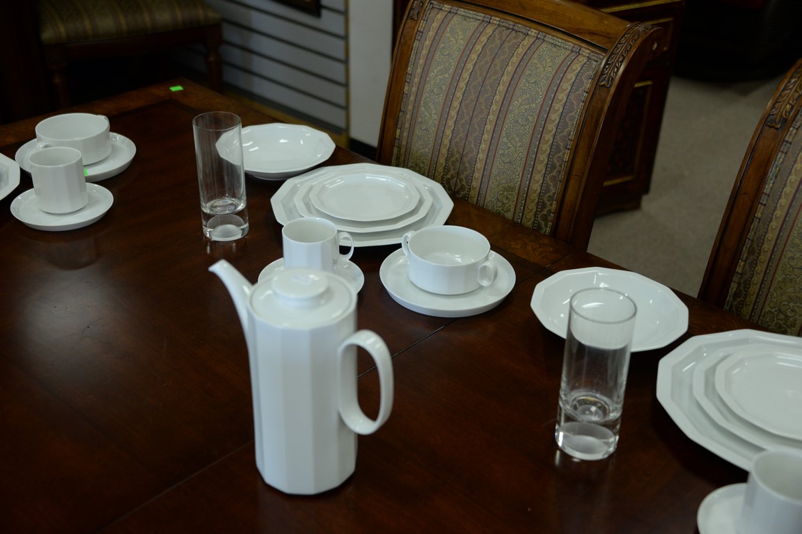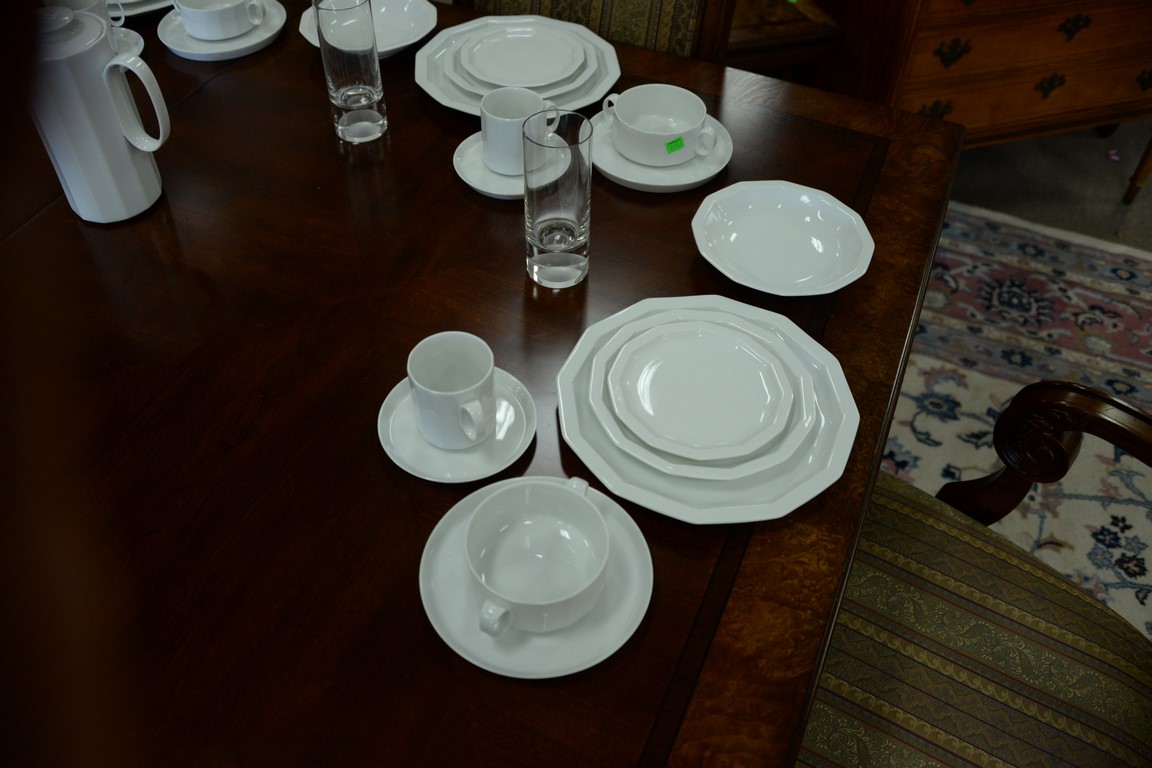 Lot 32: Set of Rosenthal china dinnerware, service for eleven along with seven goblets signed Rosenthal. 105 total pieces, goblet ht. 6 1/2in.