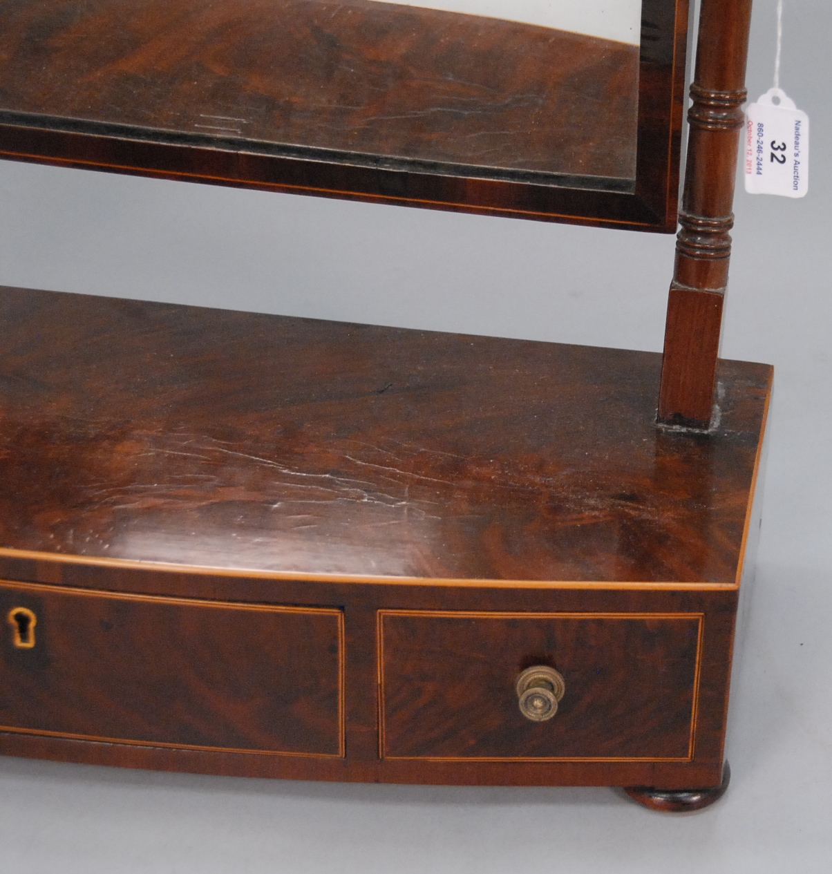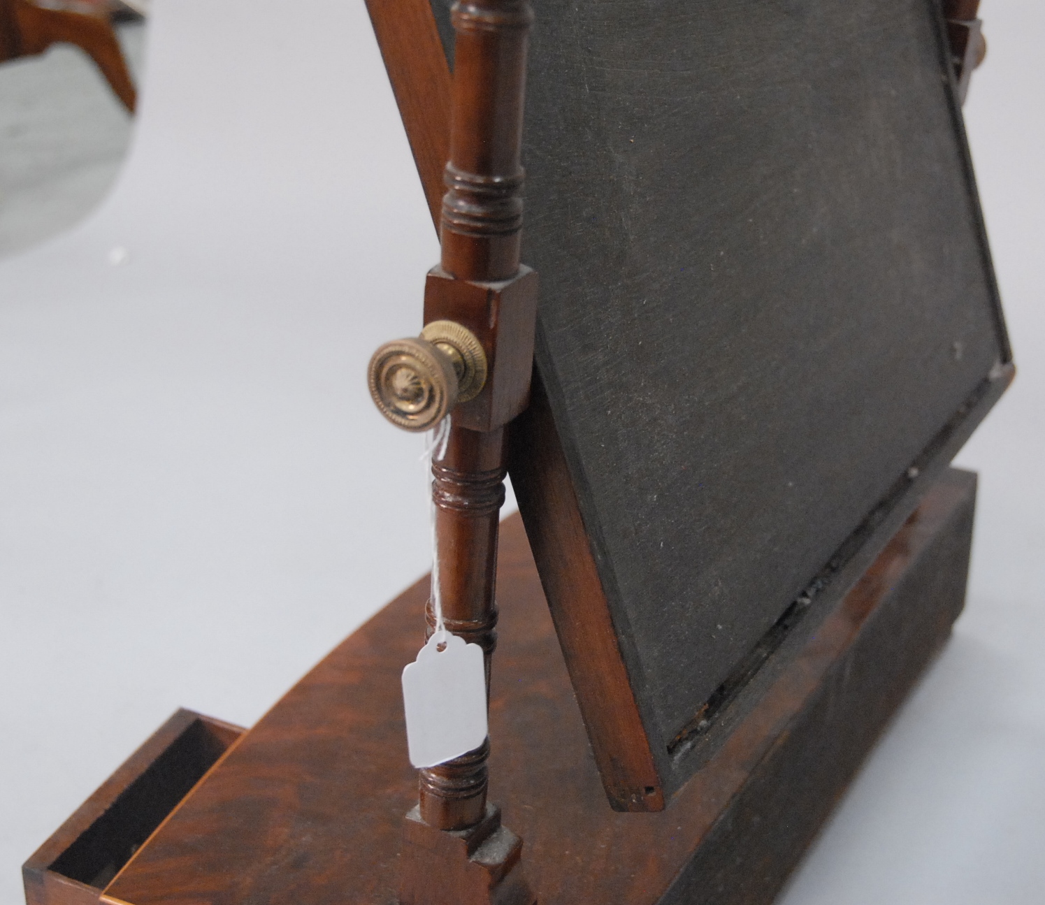 Sheraton mahogany shaving mirror with three drawers, circa 1830. wd. 20 3/4in., ht. 21in.