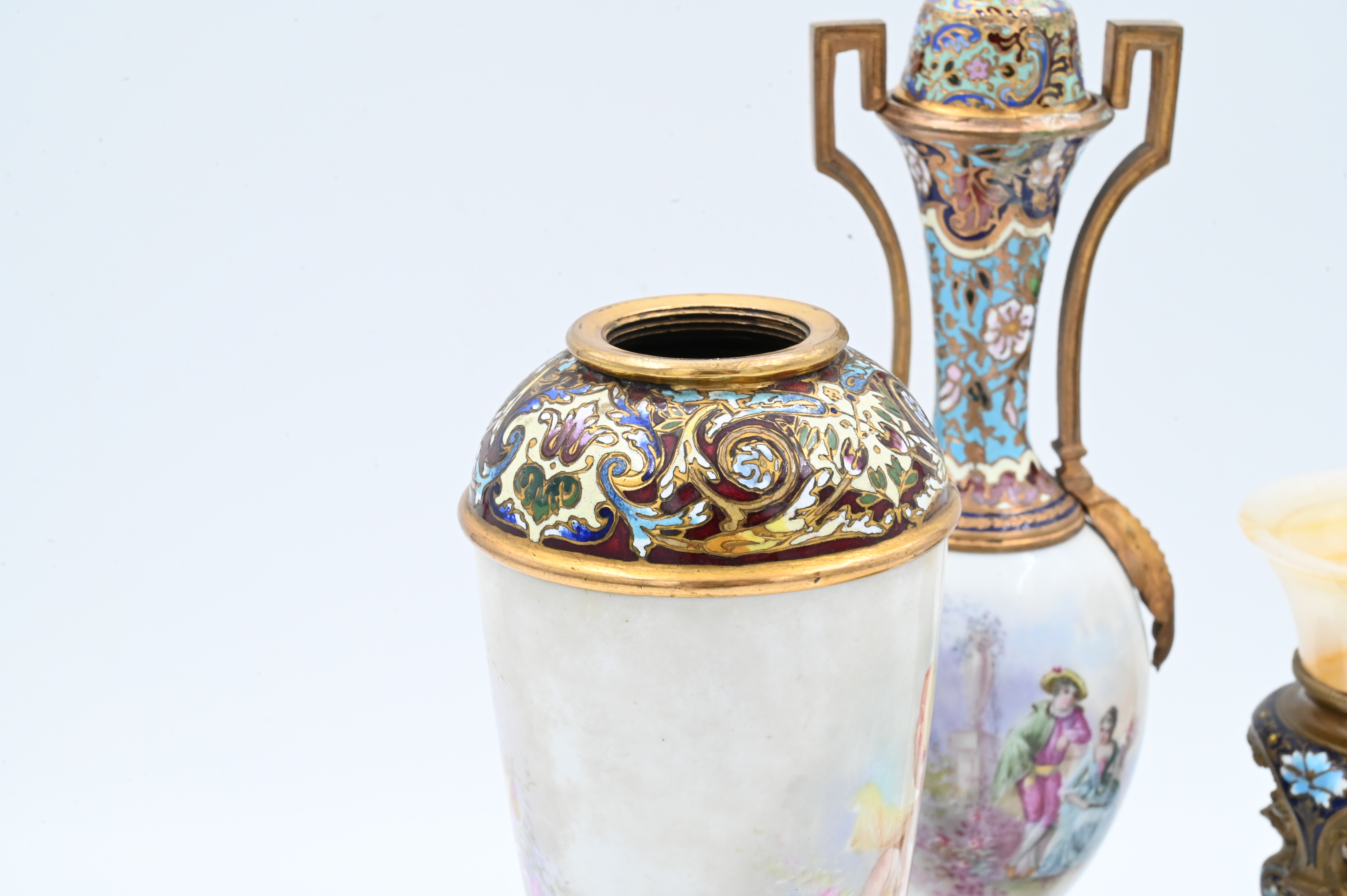 Lot 32: Three French Sevres Style Champleve Enamel Vases