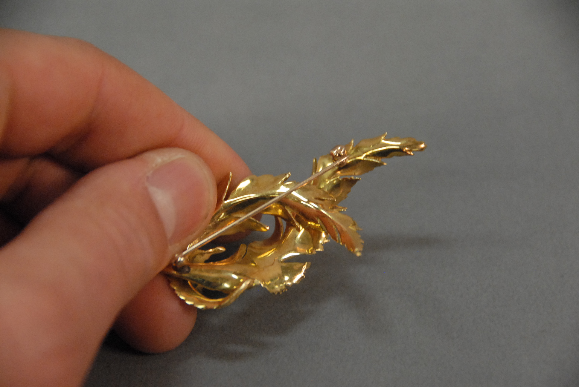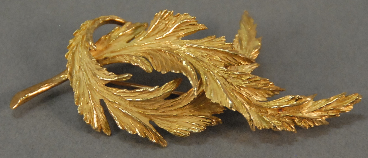Tiffany 18K gold leaf pin, marked Tiffany & Co. Italy 18K. 10.9 grams