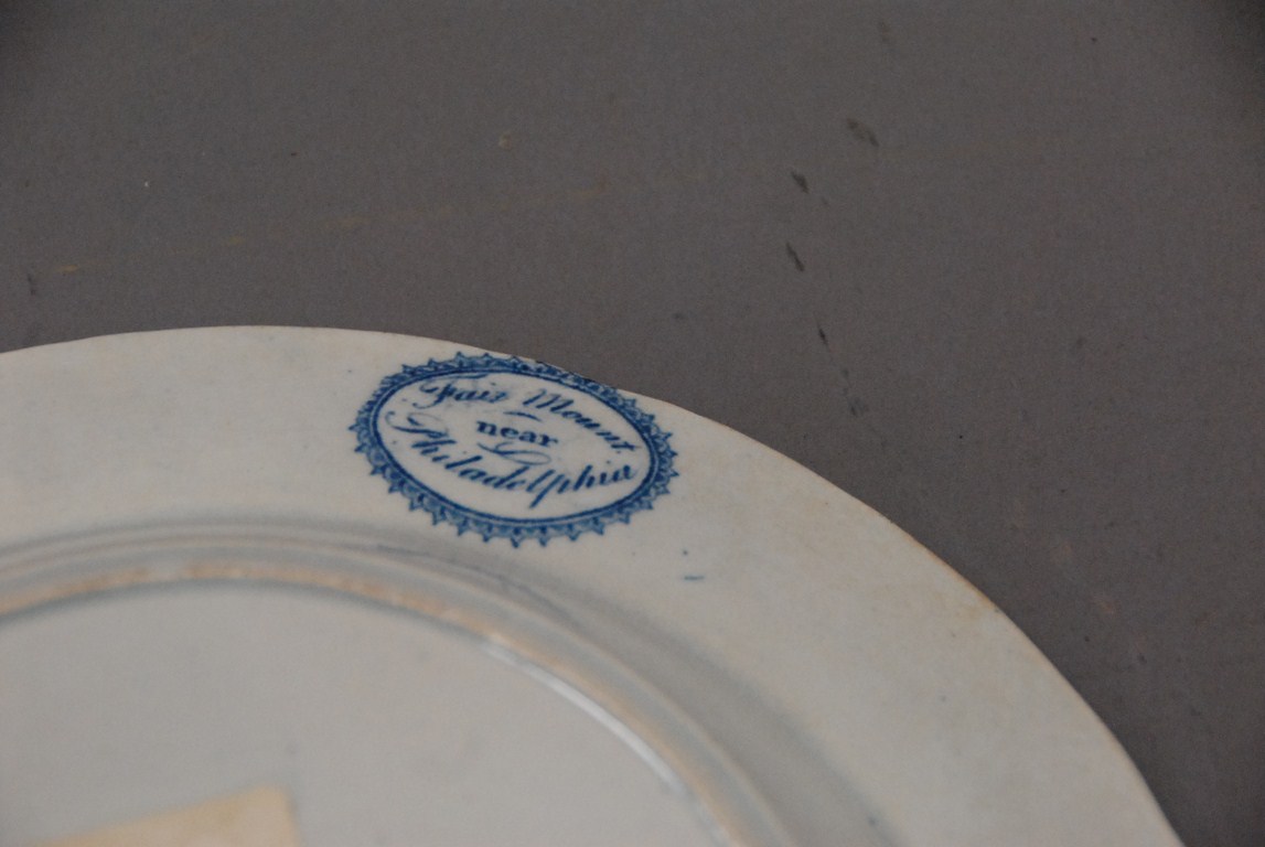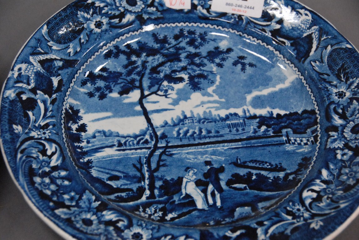 Lot 32: Two piece lot of Staffordshire bowl and plate Fairmount near Philadelphia. dia. 10 1/4in. & 10in.