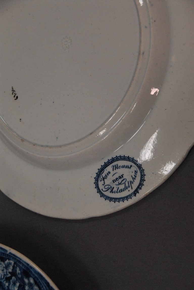 Two piece lot of Staffordshire bowl and plate Fairmount near Philadelphia. dia. 10 1/4in. & 10in.