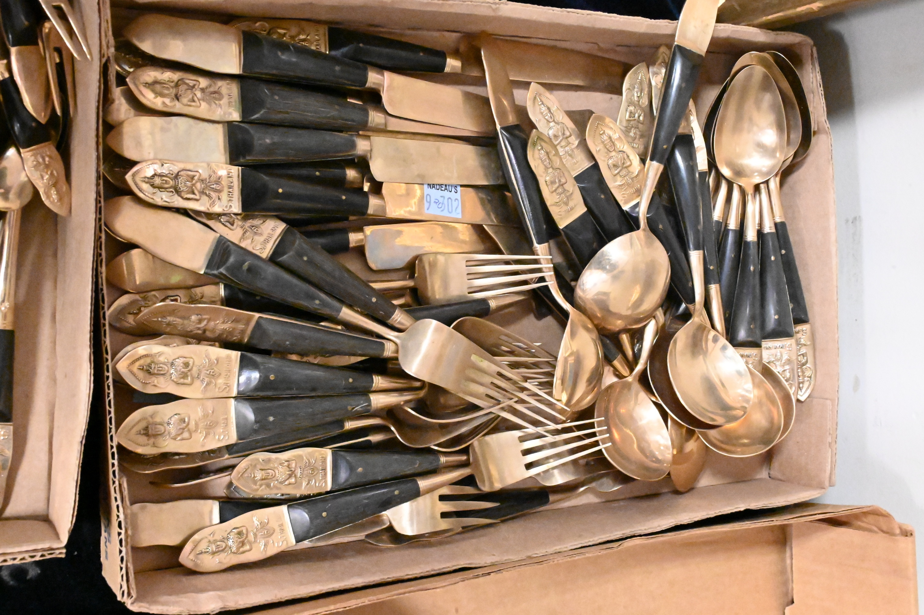 Lot 320: 148 Piece Siam Bronze Factory Ebony Handled Flatware Service