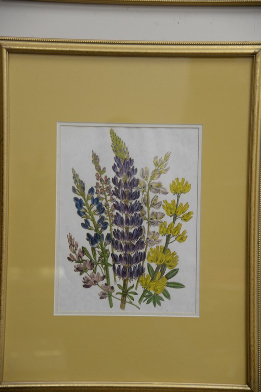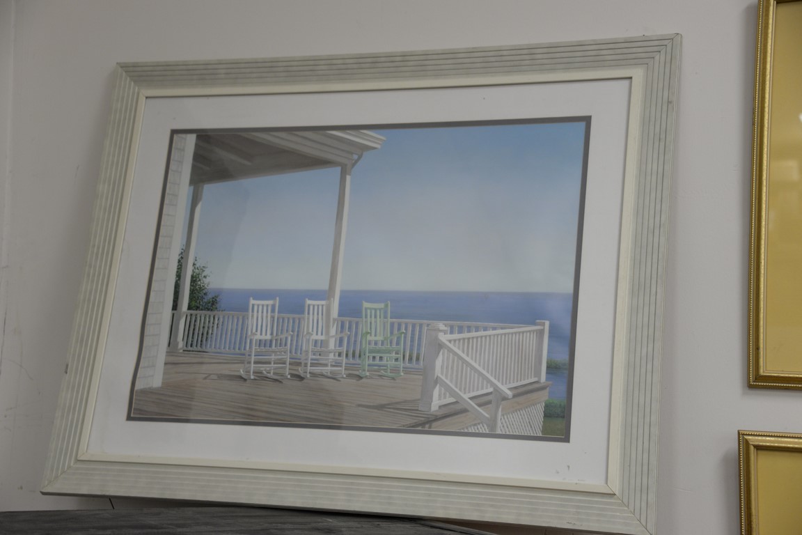 Group of six prints including a porch scene, three flower prints, and two triptic animal prints. 18 1/2 x 9 1/2 to 28 x 38