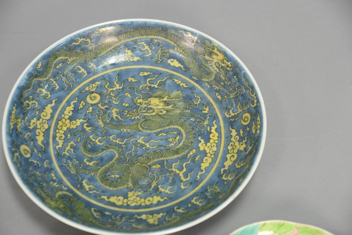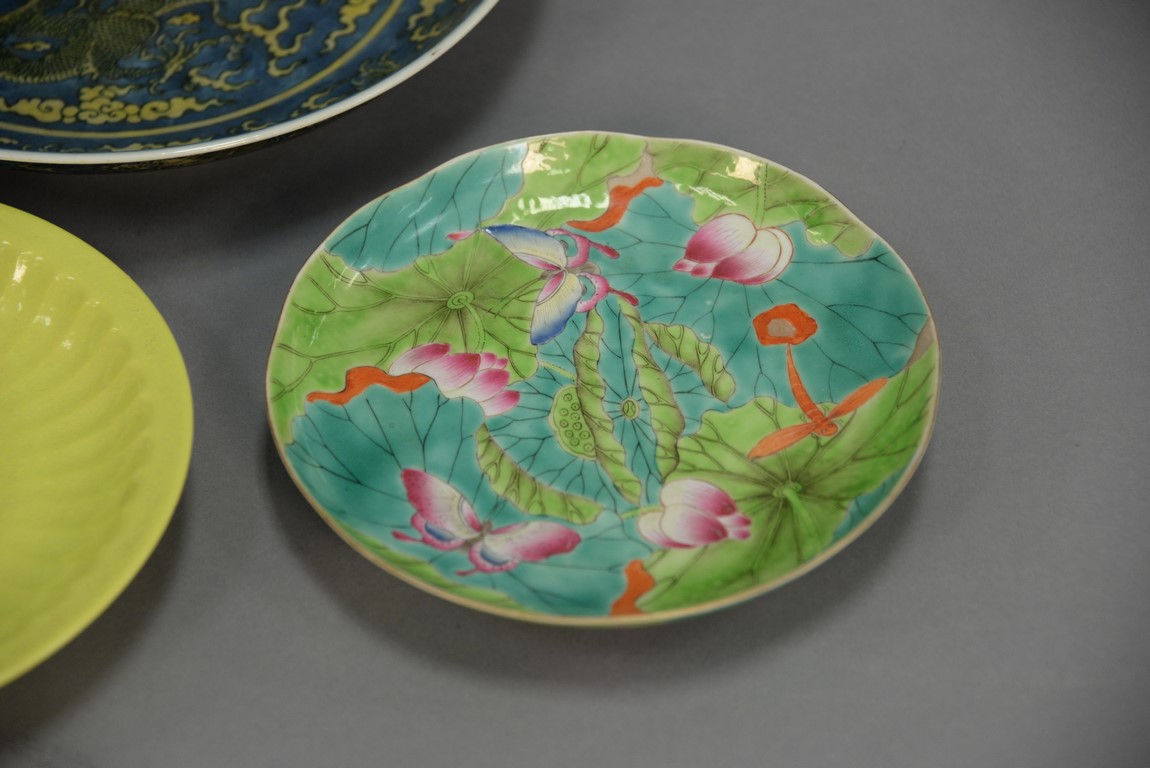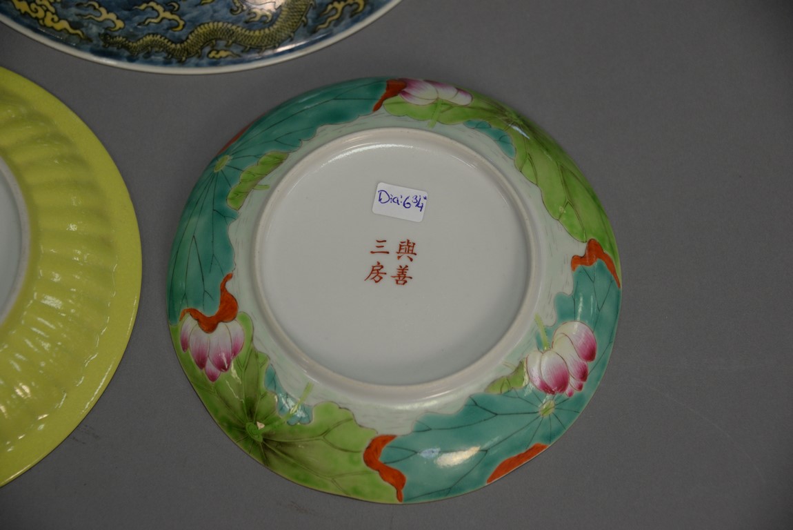 Group of three Oriental porcelain plates. dia. 6 3/4 in. to 10 in.