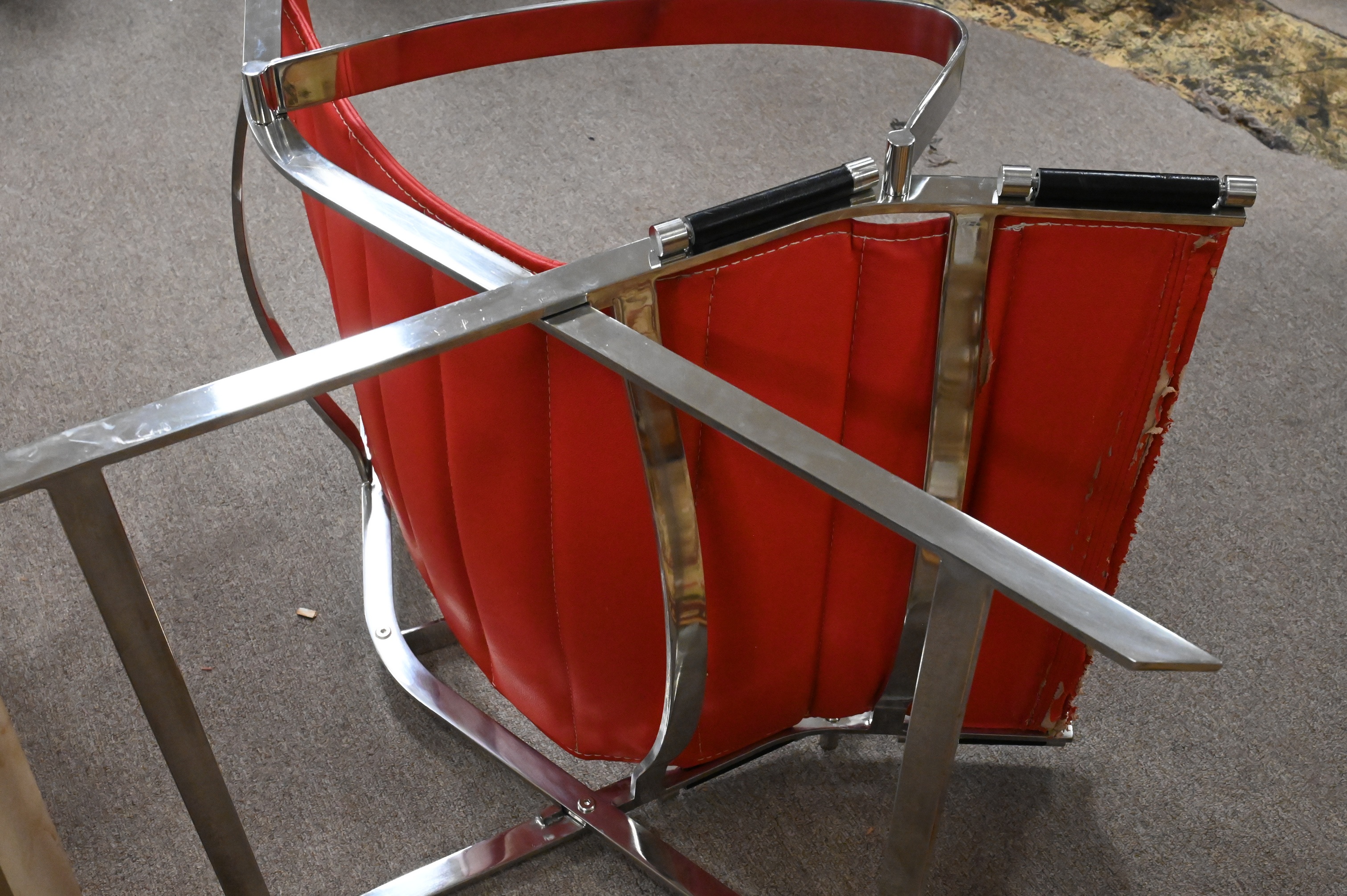 Lot 320: Italian Style Mid-Century Modern Red Leather and Chrome Sling Chair