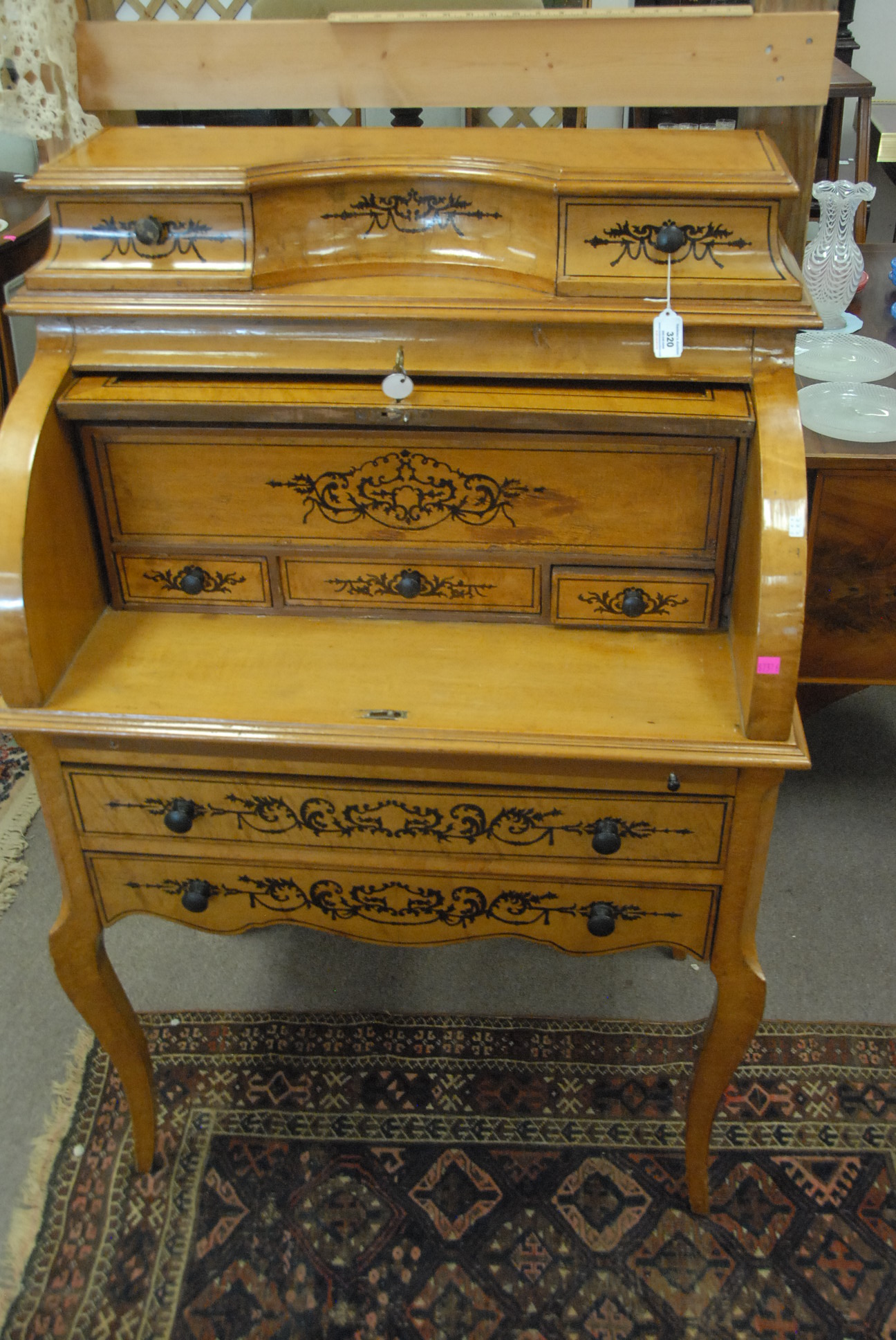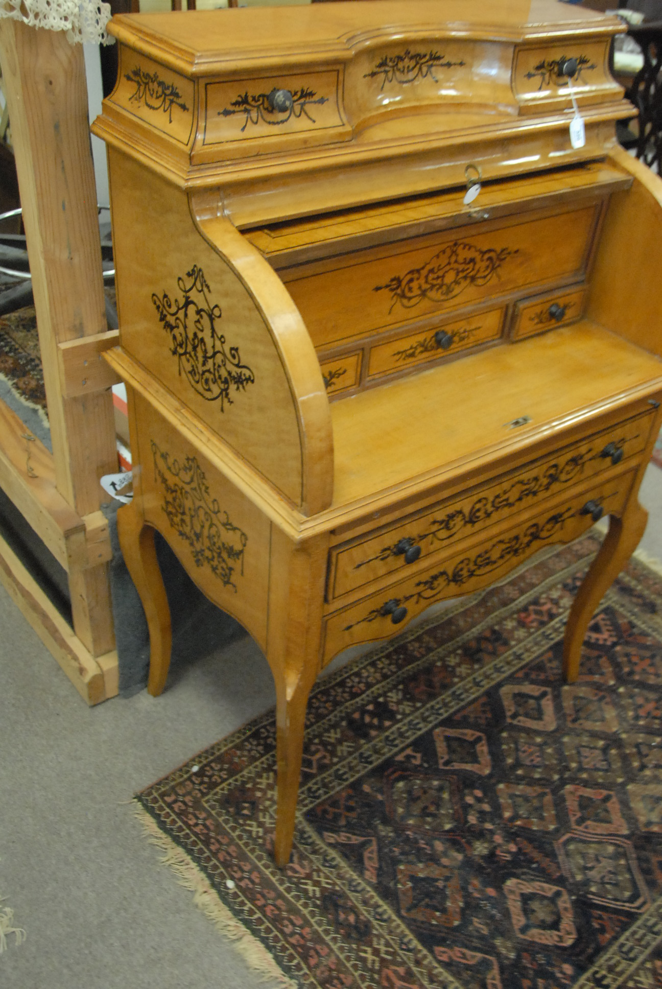Louis XV style cylinder roll top desk.ht. 50 in. wd. 33 in.