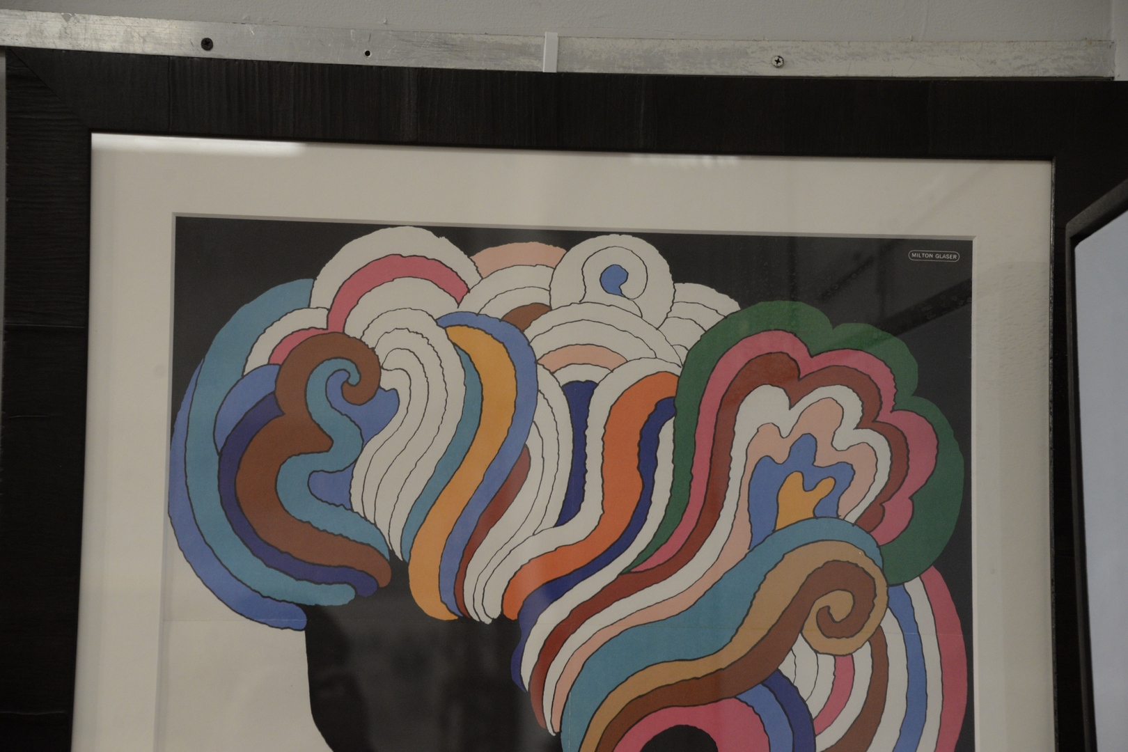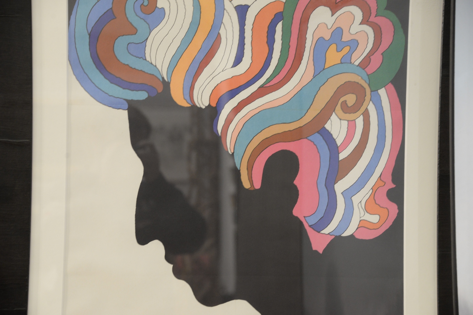 Lot 320: Milton Glaser (American, 1929 – 2020), “Bob Dylan, circa 1967″, offset lithograph in colors, on paper, sight size: 32 1/2″ x 22”.