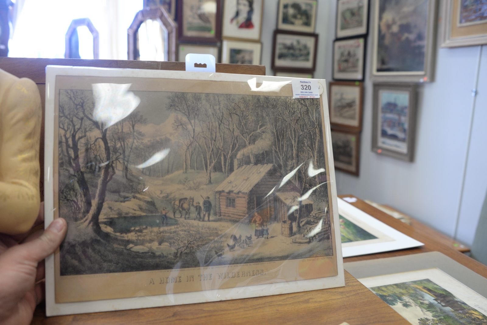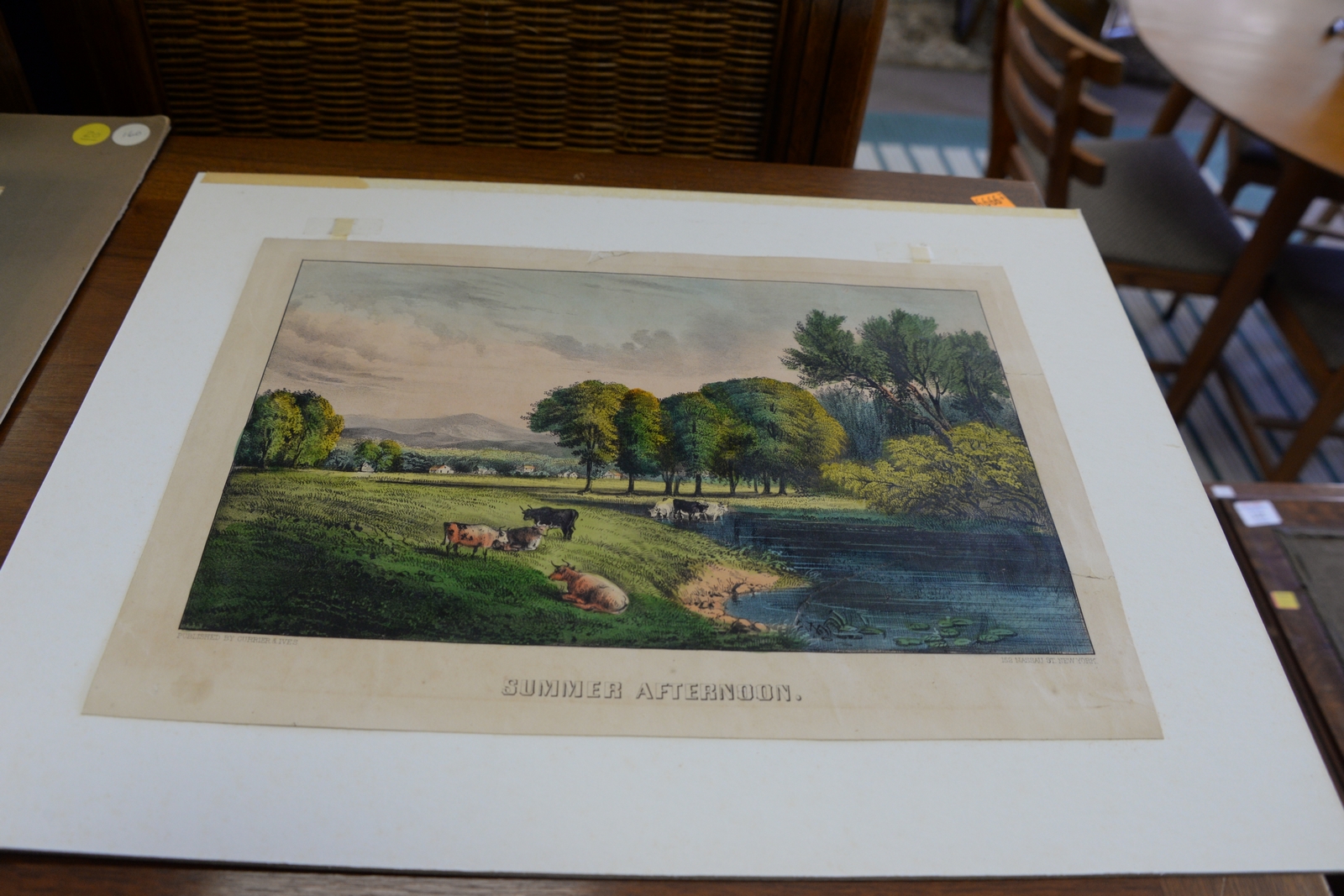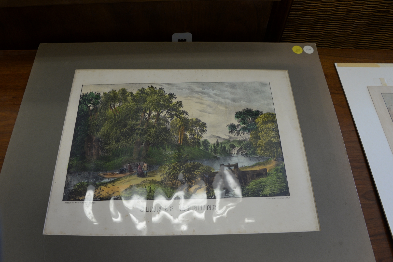 Lot 320: Six Currier & Ives colored lithographs, small folio to include Landing Trout, Summer Morning, Summer Afternoon, The Snow Stor…