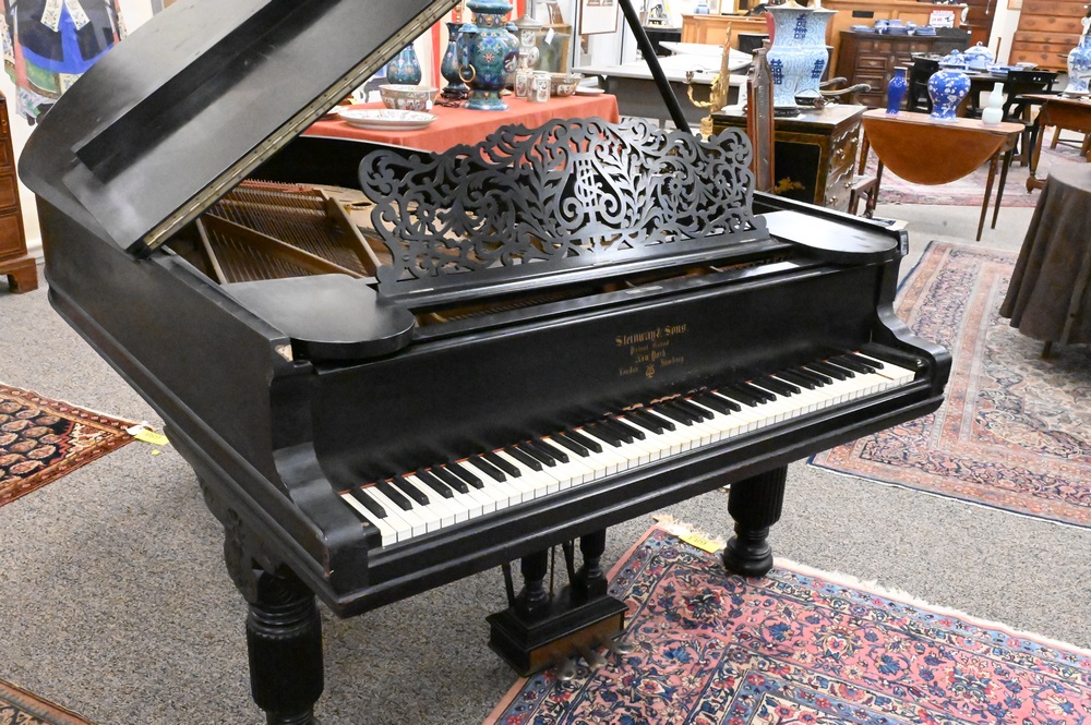 Lot 320: Steinway & Cons Ebonized Grand Piano, on fluted and turned legs, late 19th/early 20th century, #85972, length 73 inches. Provenance: An estate from Redding, CT.