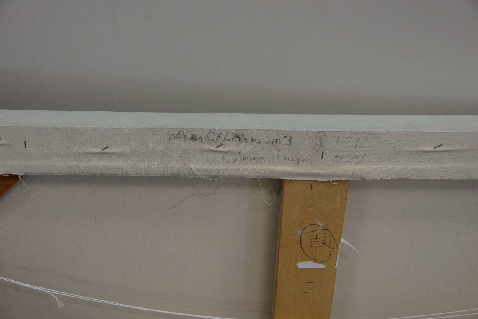 Lot 320: Susanna Tanger (American, b. 1942), The Celadon Series: four works, 1974, acrylic on canvas; signed, titled, dated, and inscribed on the reverse of each, each 32″ x 40″.