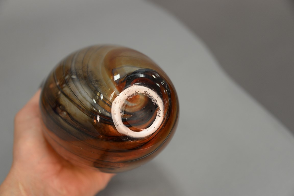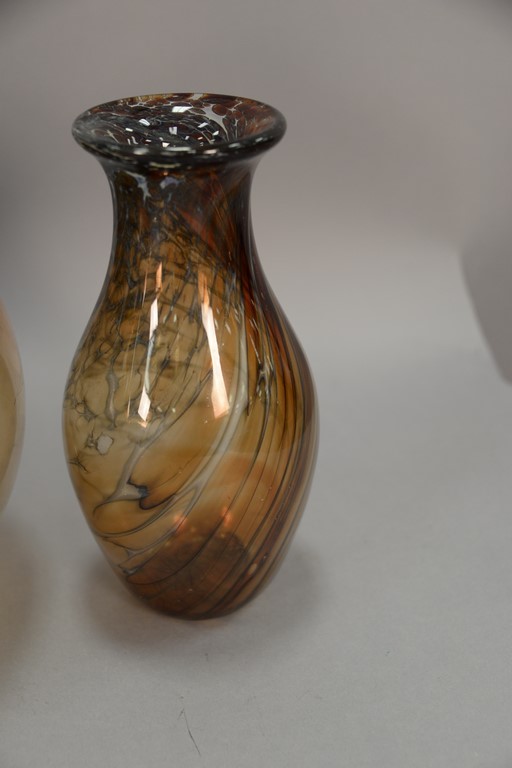 Lot 320: Three art glass pieces to include James Clarke art glass brown/white vase signed James Clarke Studio 1979 on bottom, J. Prem Studios…