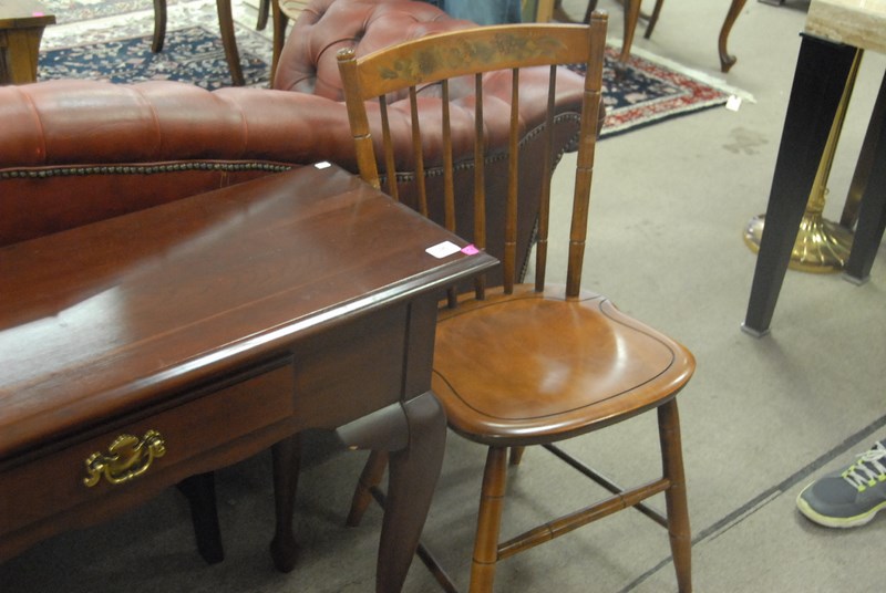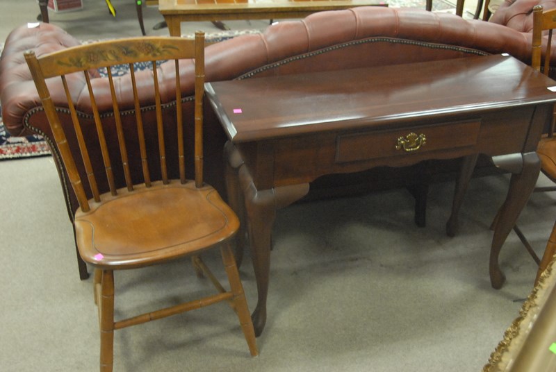 Three piece lot to include pair of Hitchcock side chairs and small cherry hall table.