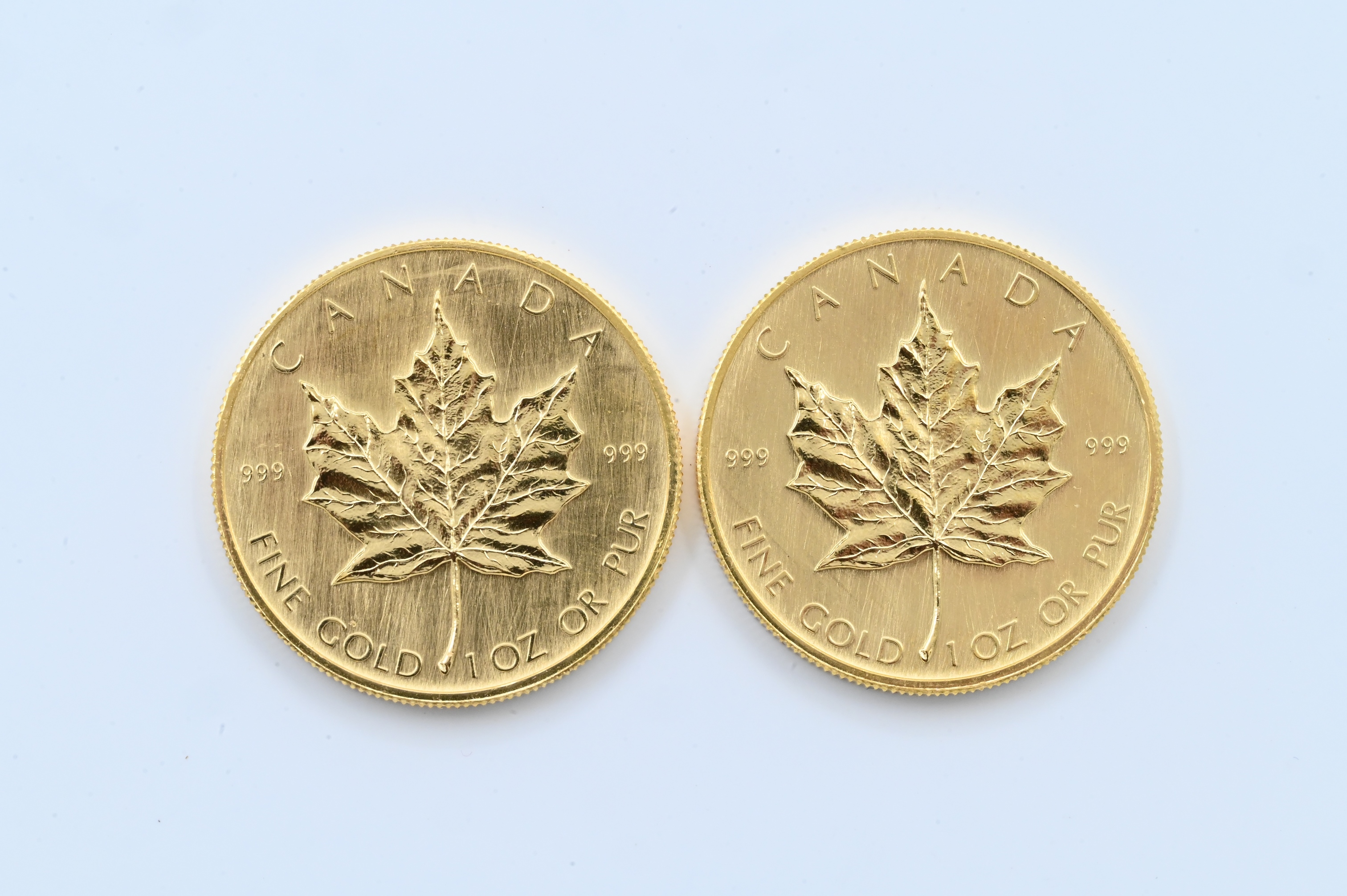 Two 1980 Canadian Maple Leaf 1 Ounce Gold Coins