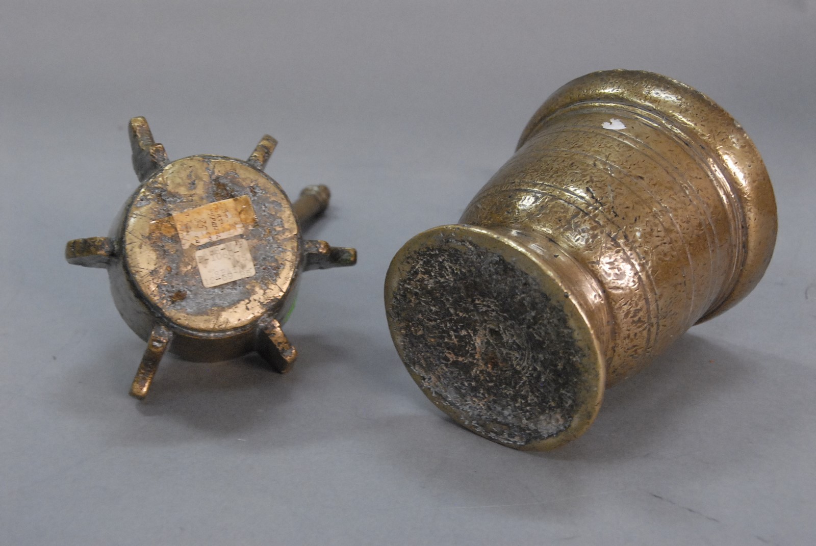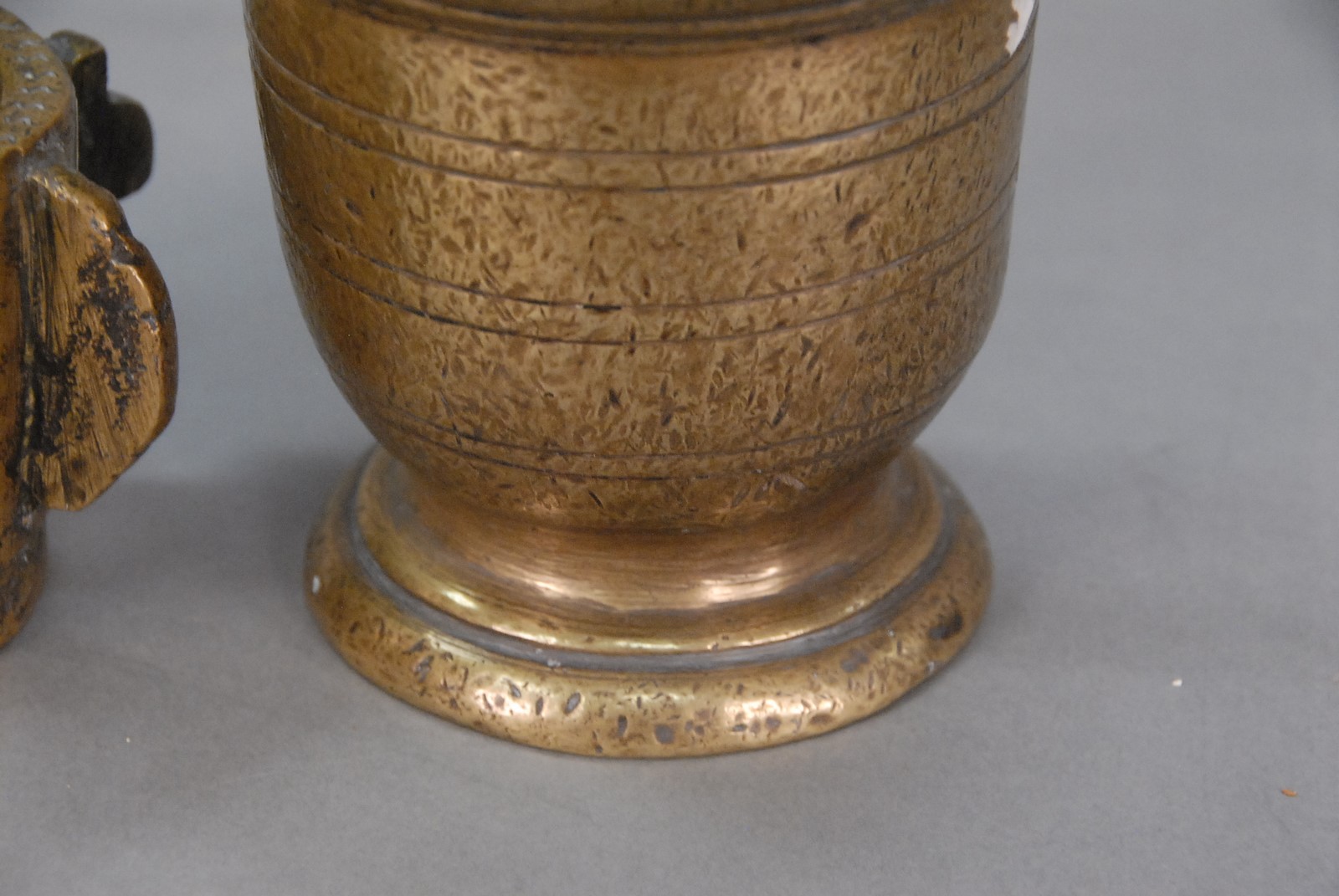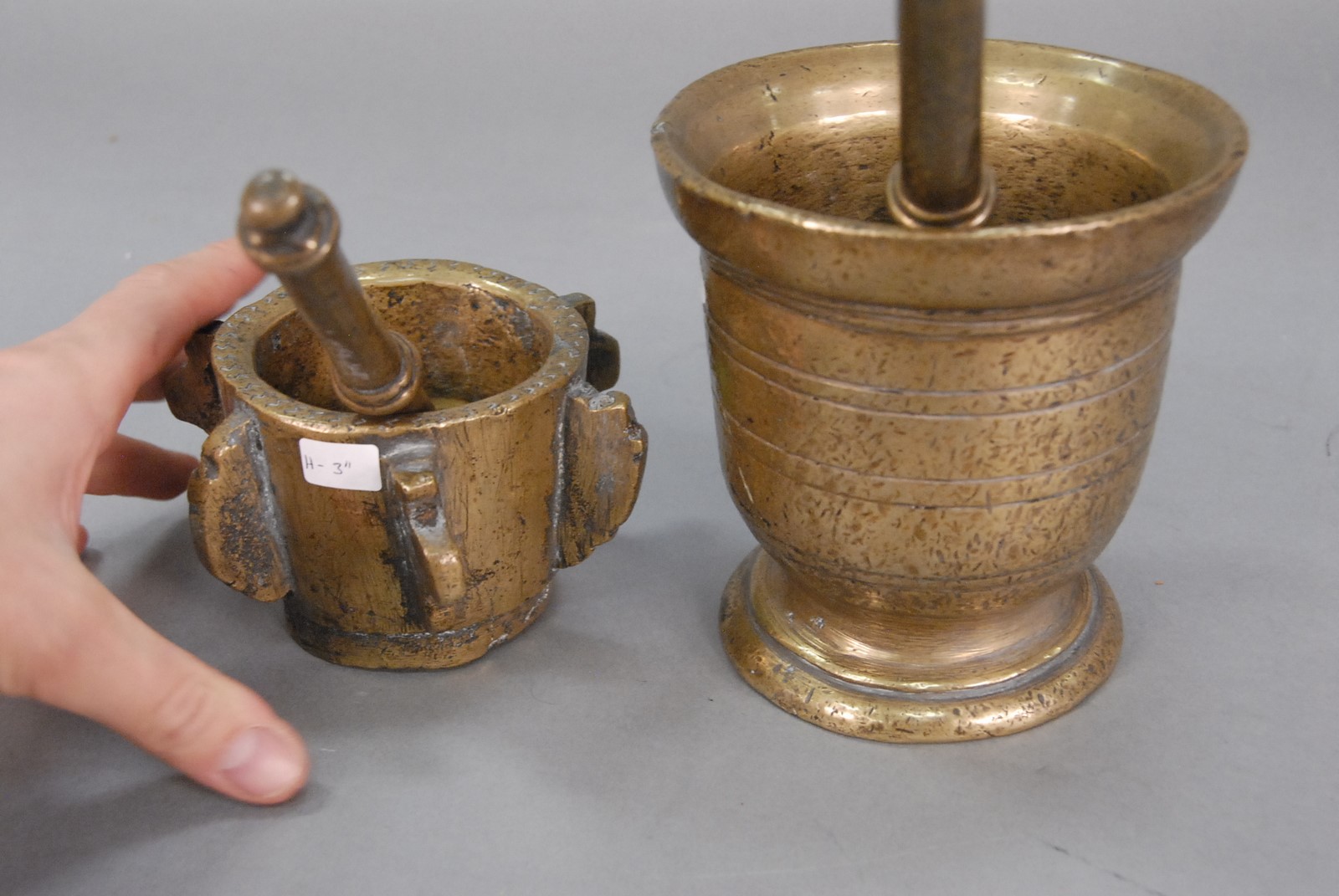 Two brass mortar and pestles, 17th/18th century. Provenance: Property from a Private Collection Sold for the Benefit of the Virginia Historical Society.