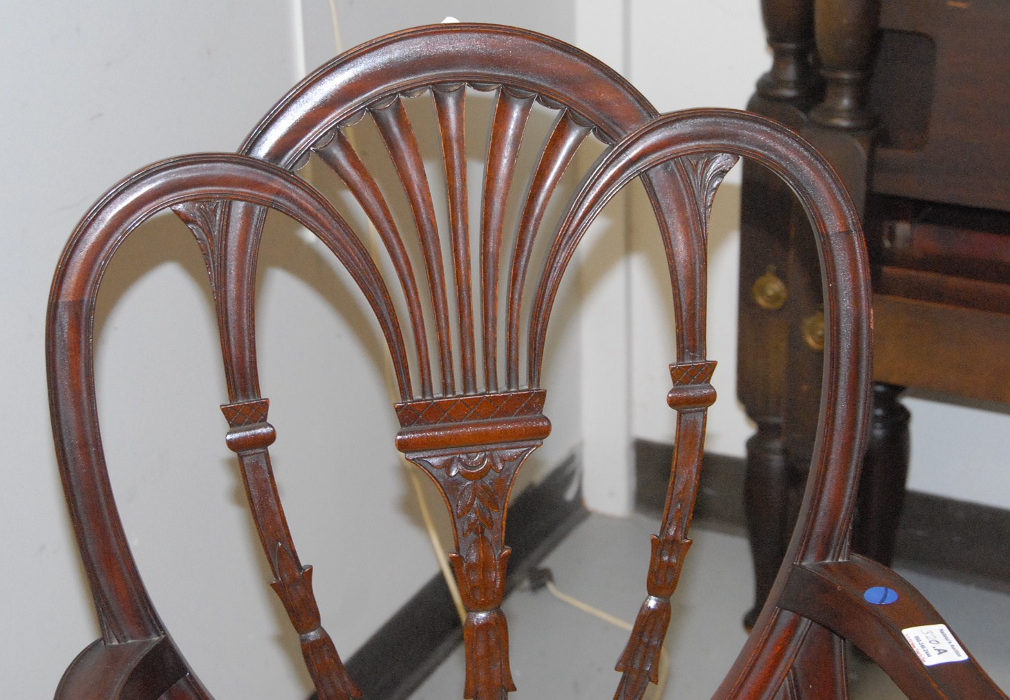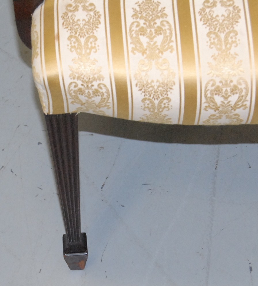Custom mahogany armchair, Federal style with tripple heart back, fully upholstered seat on square tapered legs.