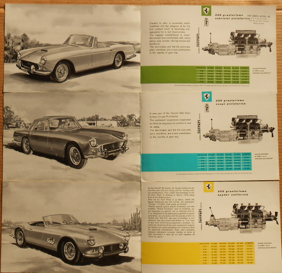 6 Ferrari items – 250 GT cab, 250 GT coupe, 250 GT Spyder broc – 410 Super, 250 GT, 250 GT loose leaf