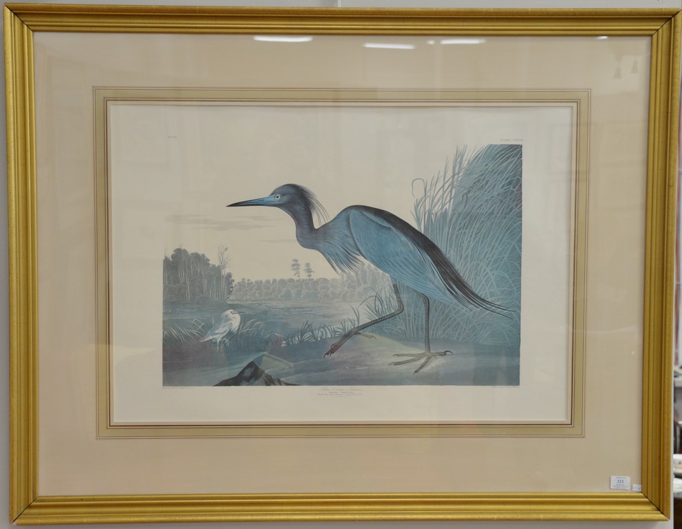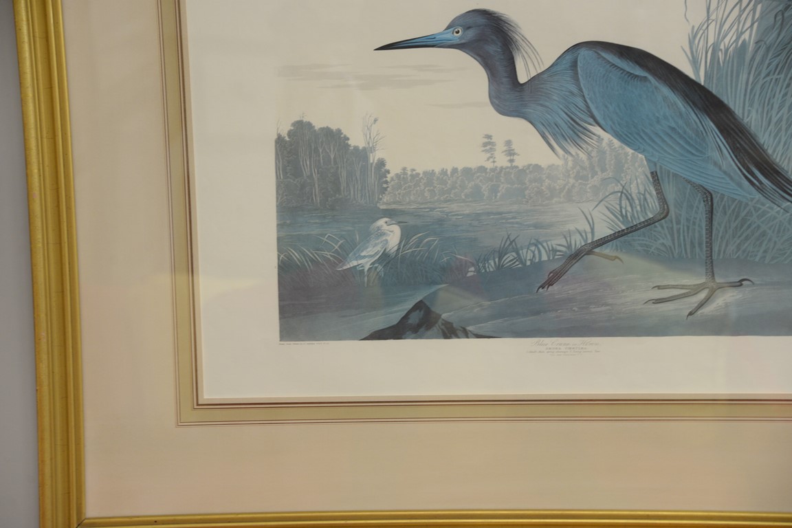 Lot 321: After John James Audubon, after Havell, colored print, Blue Crane or Heron, elephant folio size, framed and matted, sight size 24…