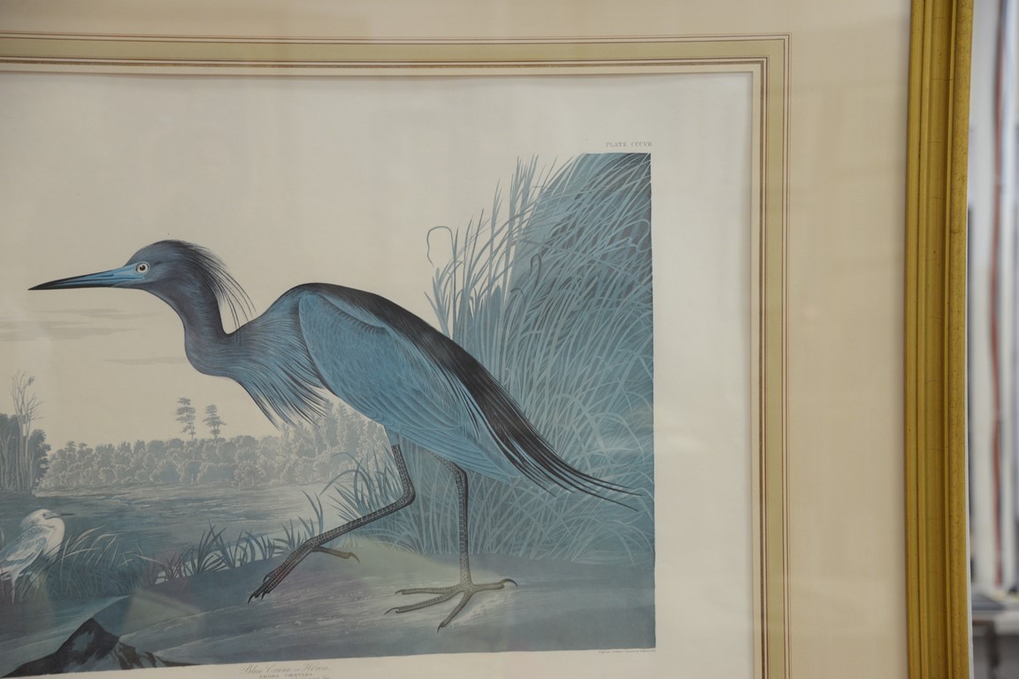 After John James Audubon, after Havell, colored print, Blue Crane or Heron, elephant folio size, framed and matted, sight size 24 1/2 x 35 1/2. Property from Credit Suisse’s Americana Collection