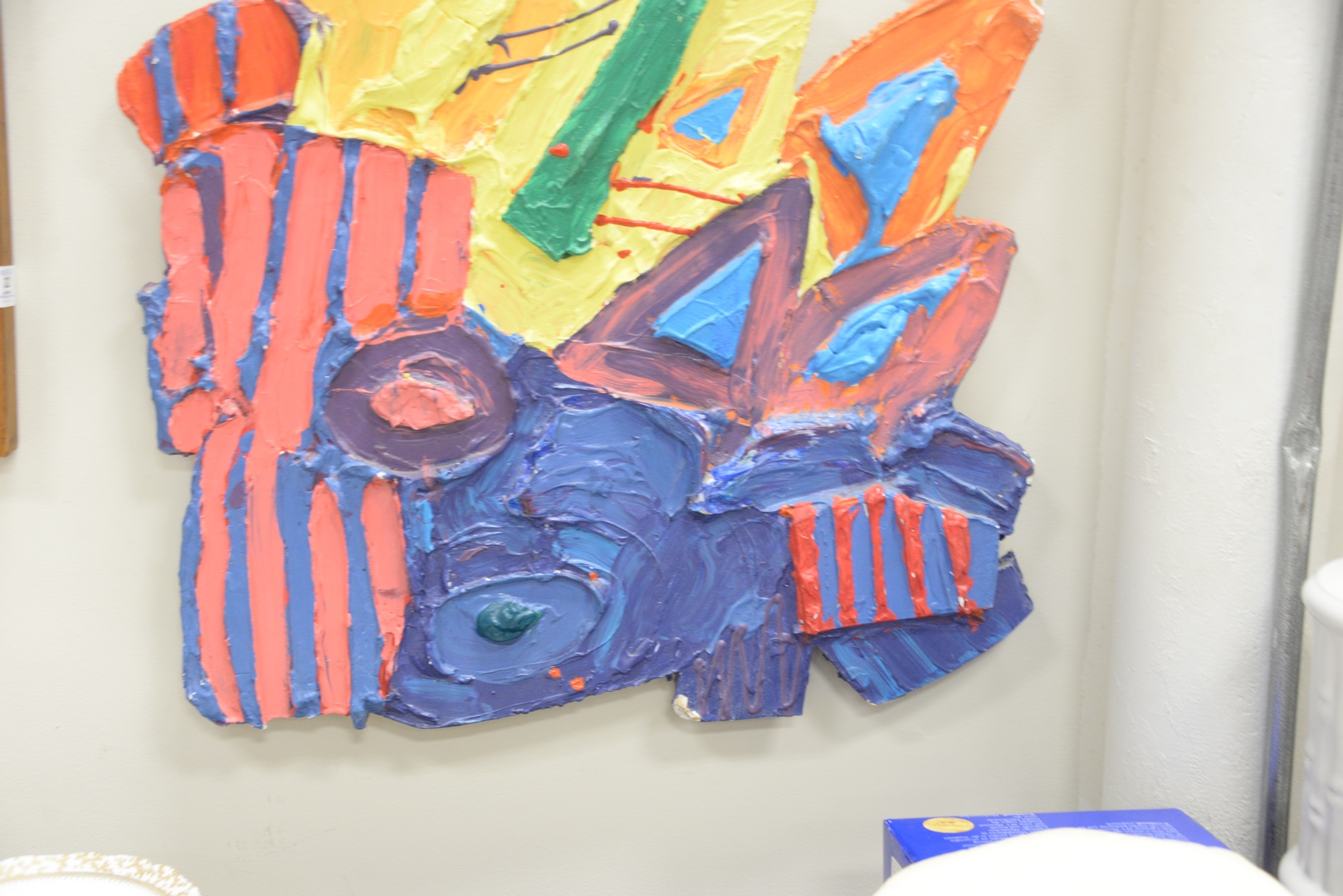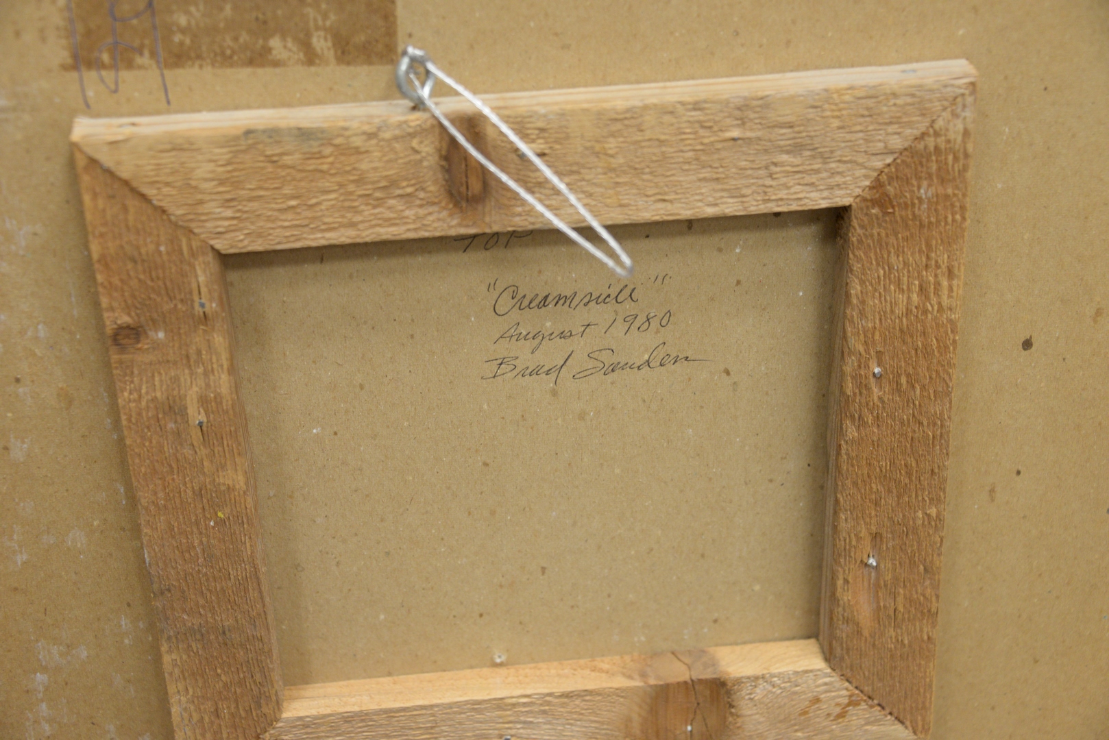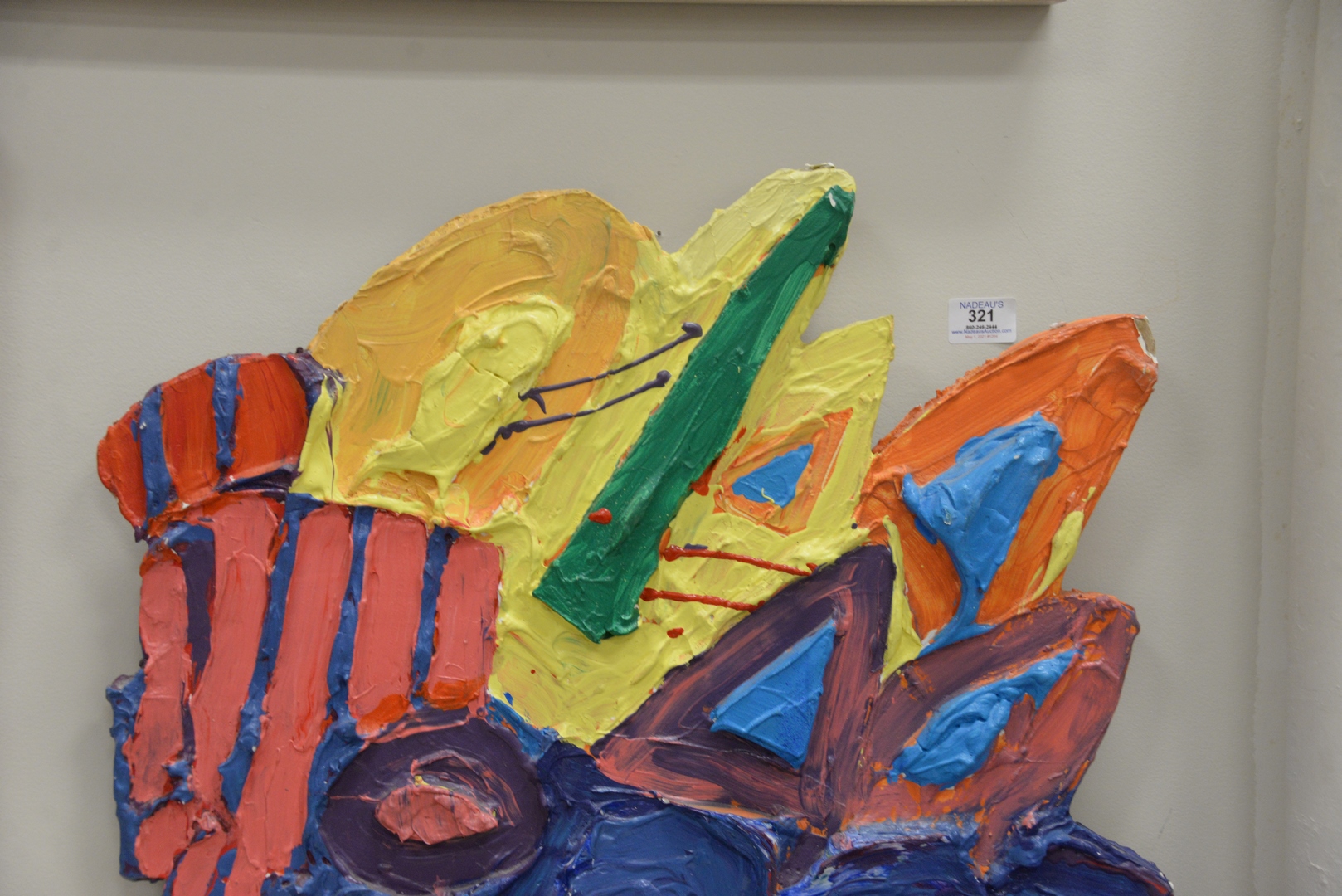 Lot 321: Brad Sanders (20th Century), Creamsicle, 1980, acrylic, polymer paint and joint compound on gypsum board; signed, titled, and dated on the reverse, 23″ x 23″.