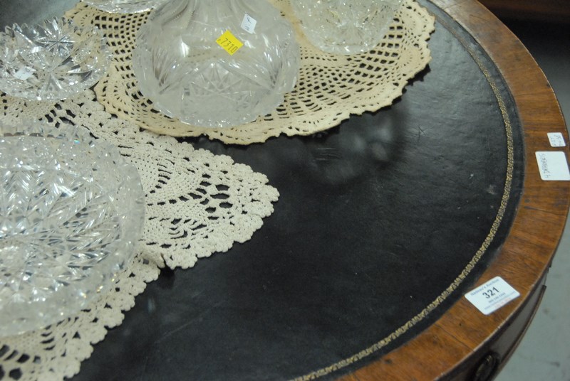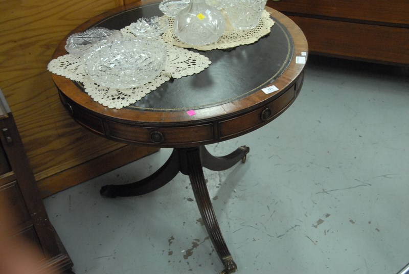 Four drawer drum table with leather top, ht. 27 in. dia. 30 in.
