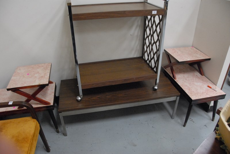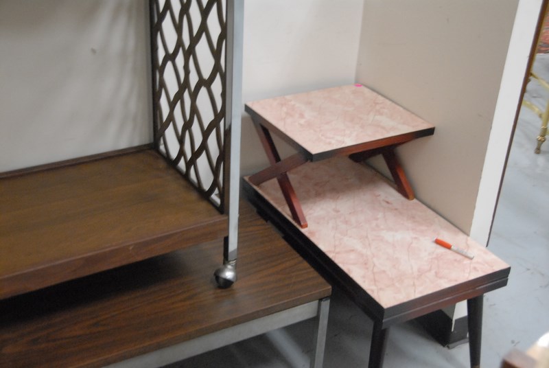 Four piece lot to include pair of step tables, coffee table, and teacart.