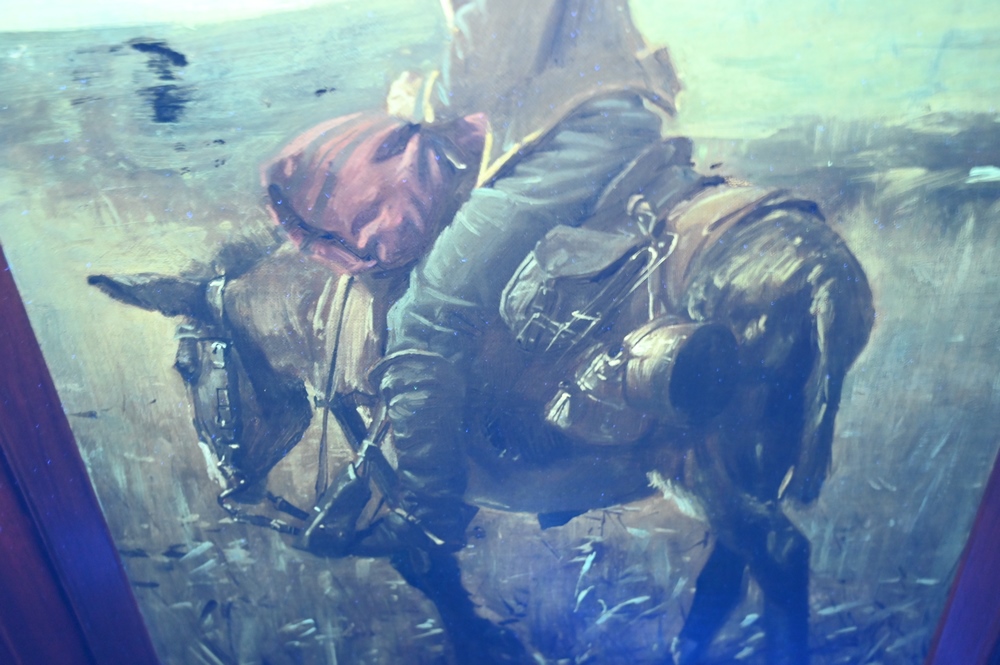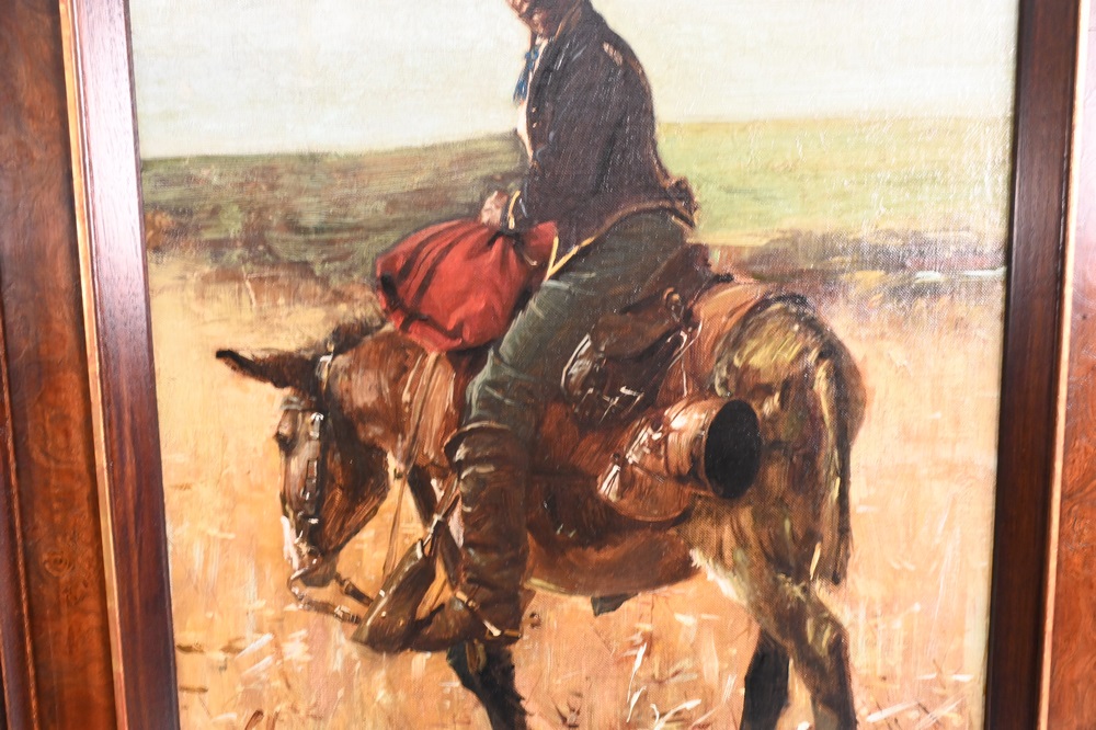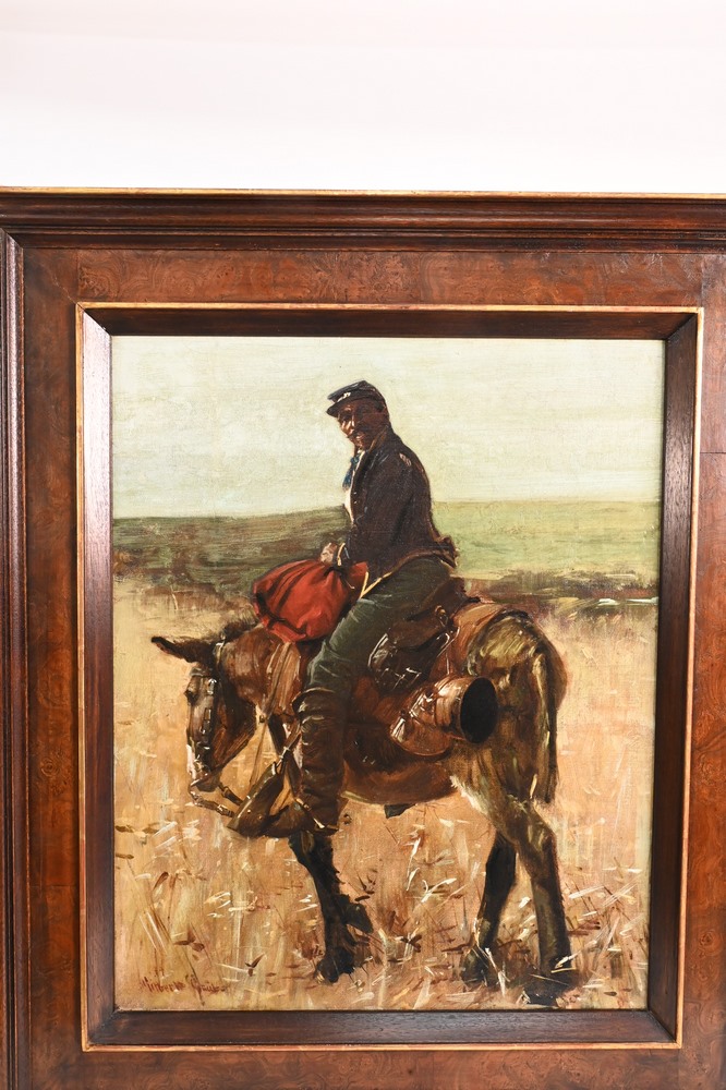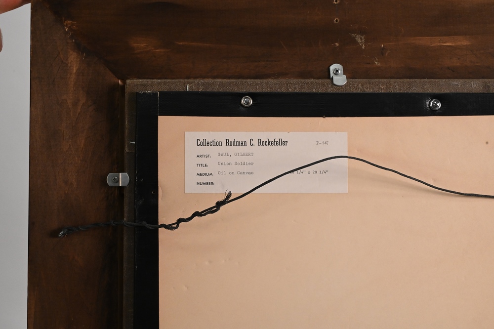 Gilbert Gaul (1855 – 1919), Union soldier, Indian, oil on canvas, signed lower left Gilbert Gaul, relined, 20 1/4″ x 16 1/4″. Provenance: From the collection of Rodman C. Rockefeller. Christie’s, Gloria 5794, lot 48B.