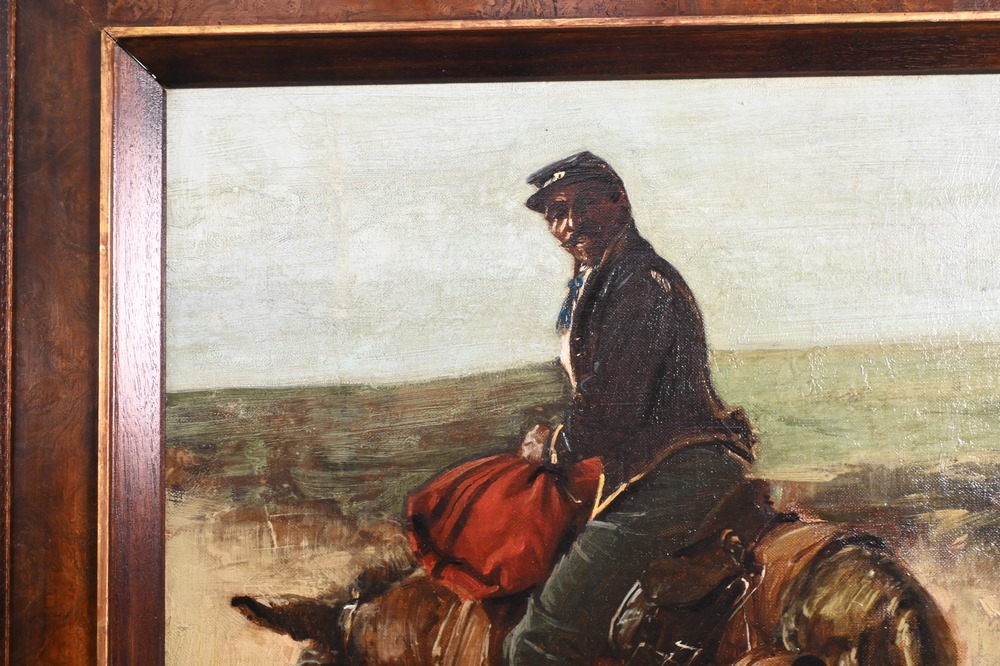 Lot 321: Gilbert Gaul (1855 – 1919), Union soldier, Indian, oil on canvas, signed lower left Gilbert Gaul, relined, 20 1/4″ x 16 1/4″. Proven…