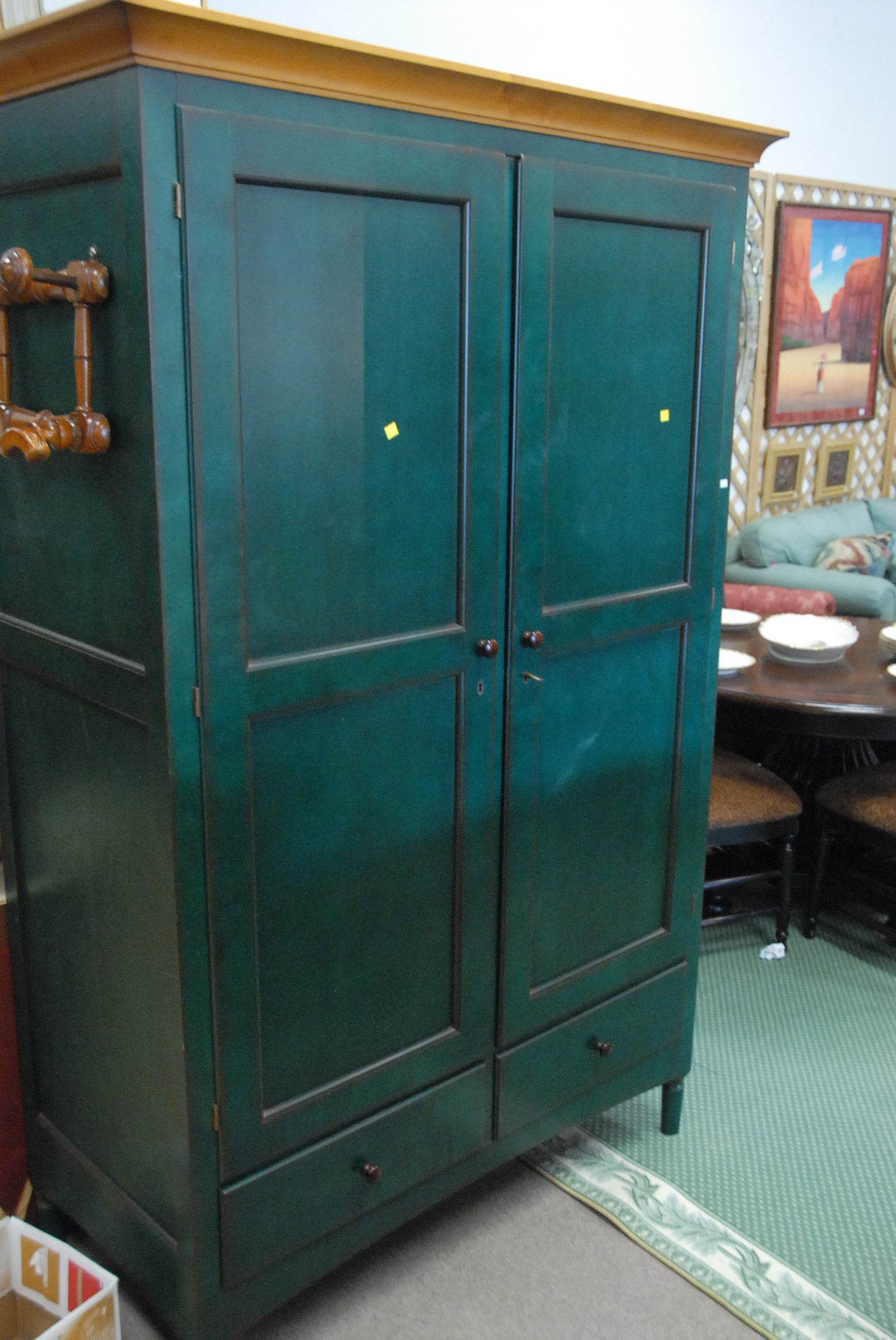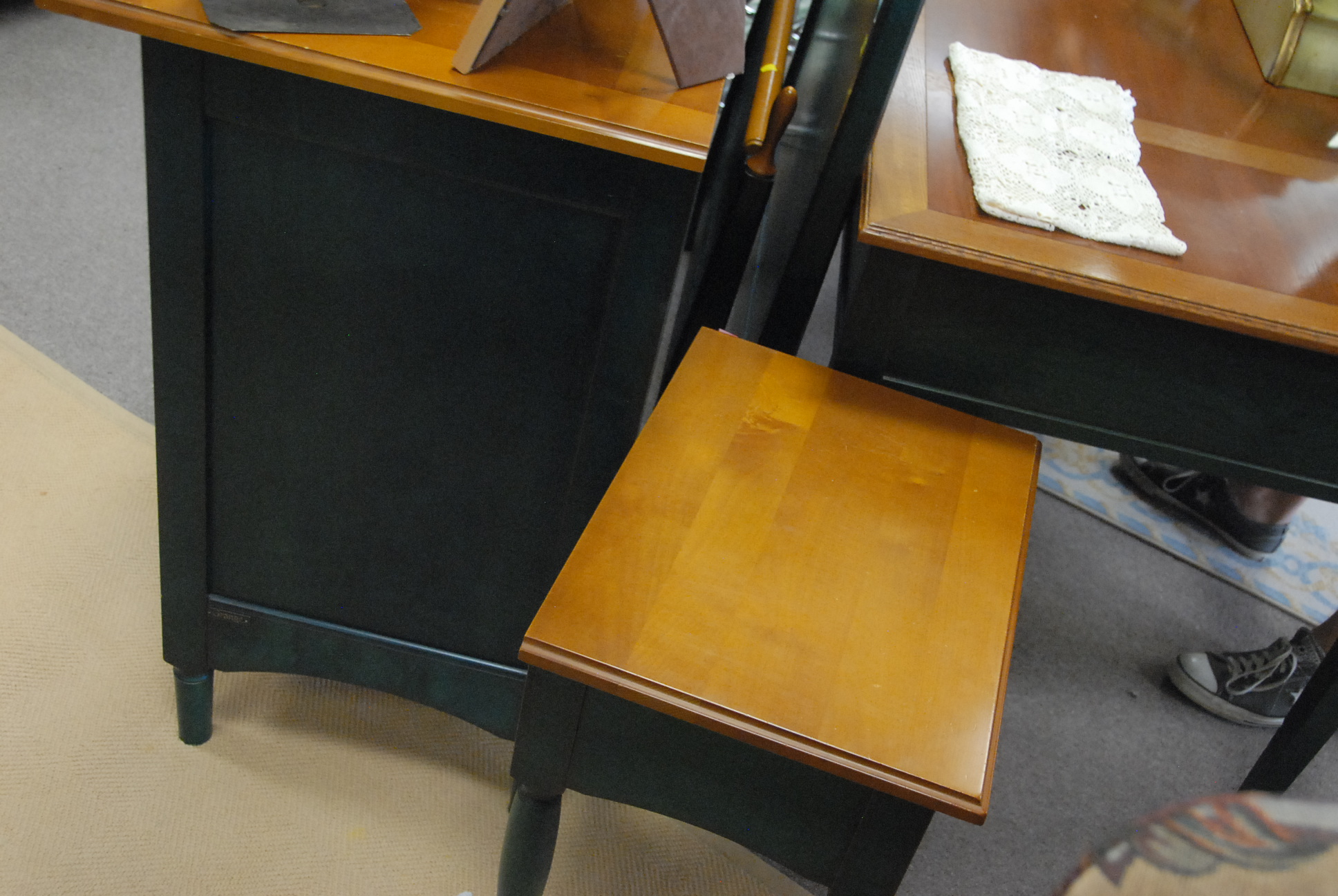 Grange four piece bedroom set with chifferobe, long chest, twin bed, and night table, long chest: ht. 37 1/2 in. lg. 74 in. dp. 19 in.